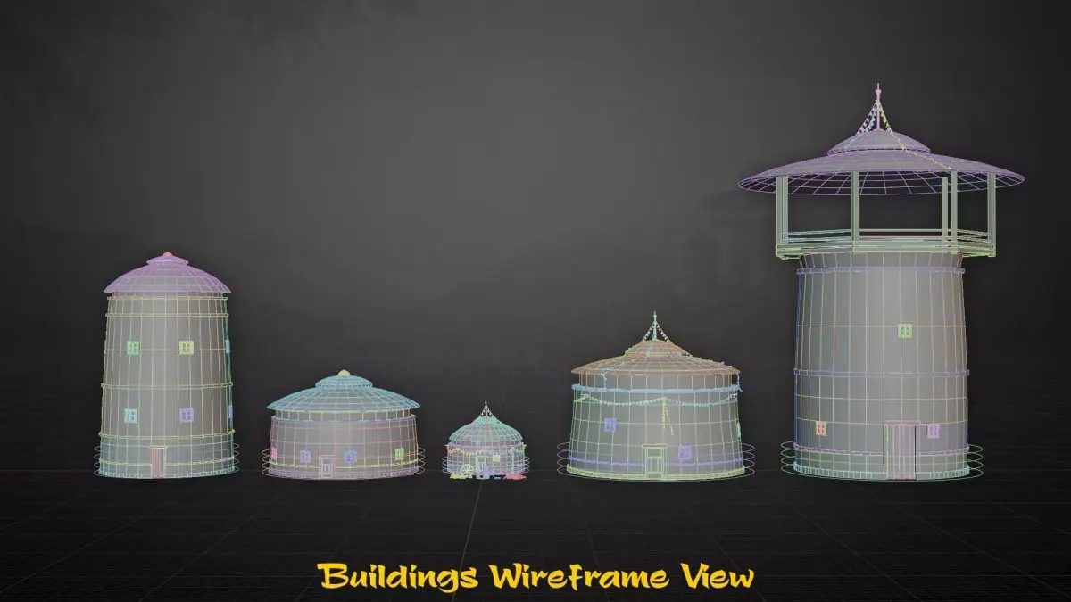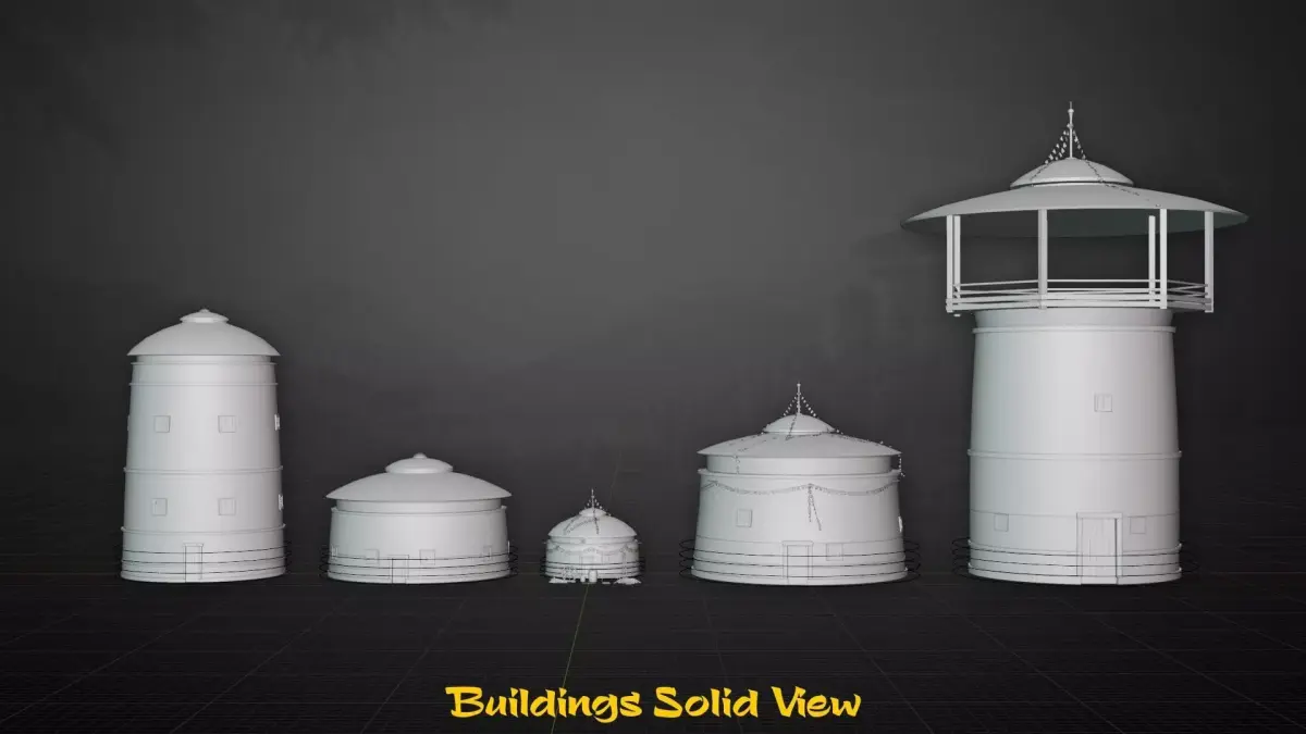 5 Modular Buildings:1x The Great Sentinel: Massive hero-asset watchtower (multi-tiered).1x Highland Manor: Two-story stone residence with a unique conical roof.3x Stone Ger Dwellings: Distinct circular stone huts in three sizes.