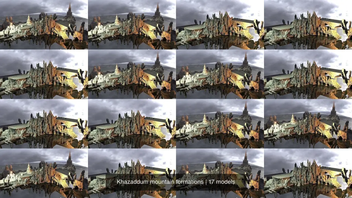 Khazaddum mountain formations 3D! comes with a series of scenes symialar but plenty of options for ruins in fbx scene format!