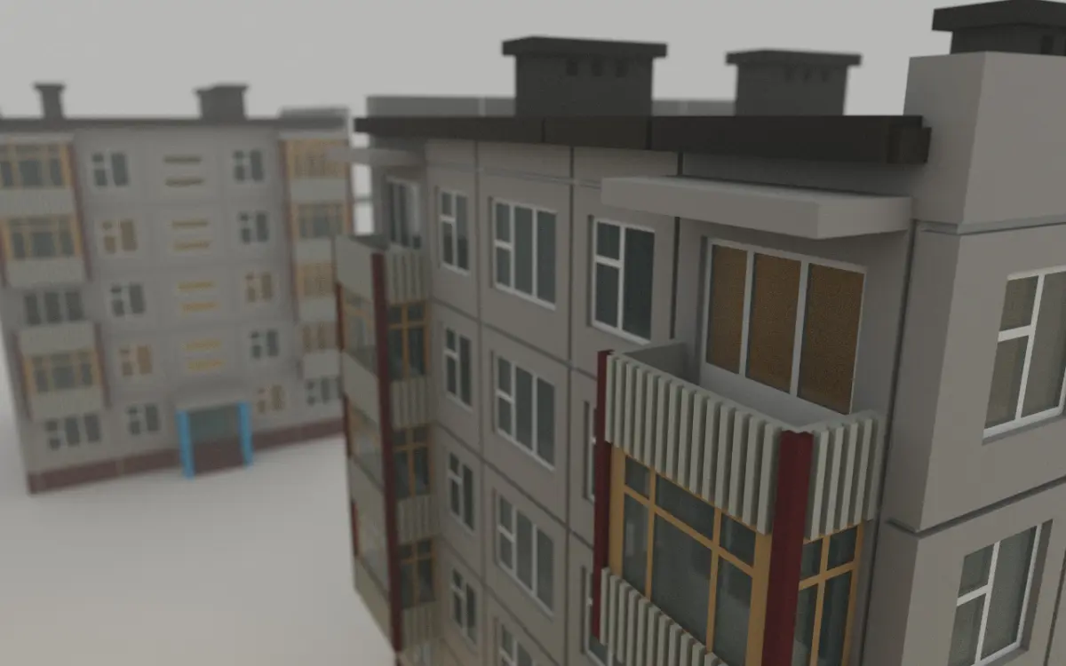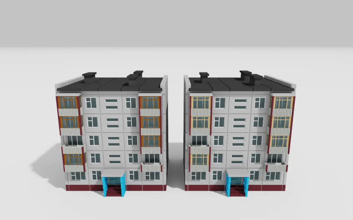 - Authentic Design: Faithfully recreated in a charming voxel style, capturing the distinct architectural features of a Khrushchyovka apartment block, including balconies, windows, and main entrance.