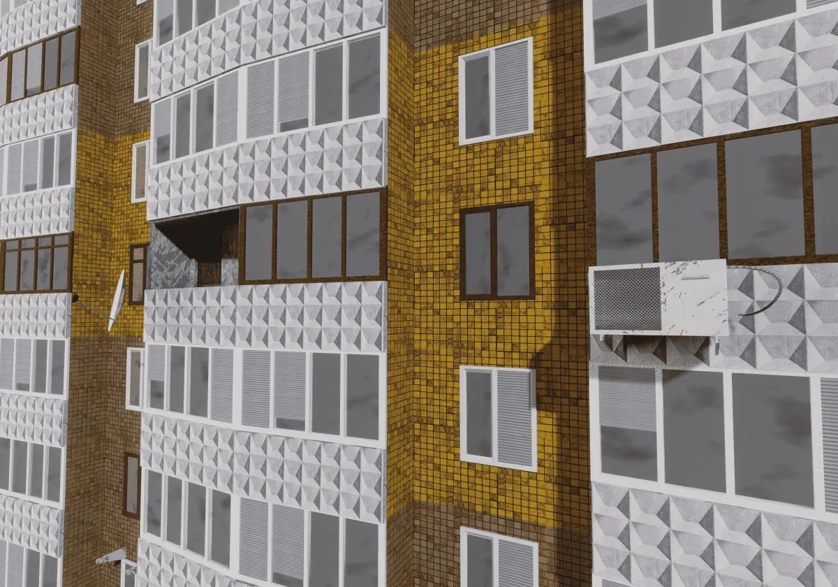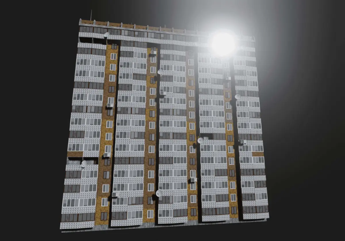 Khrushchevka in real size, consists of modules (you can rebuild as you like). Fits perfectly into post-Soviet networks. The low poly model is completely ready for use in the gaming industry. Suitable for landscaping or art projects.