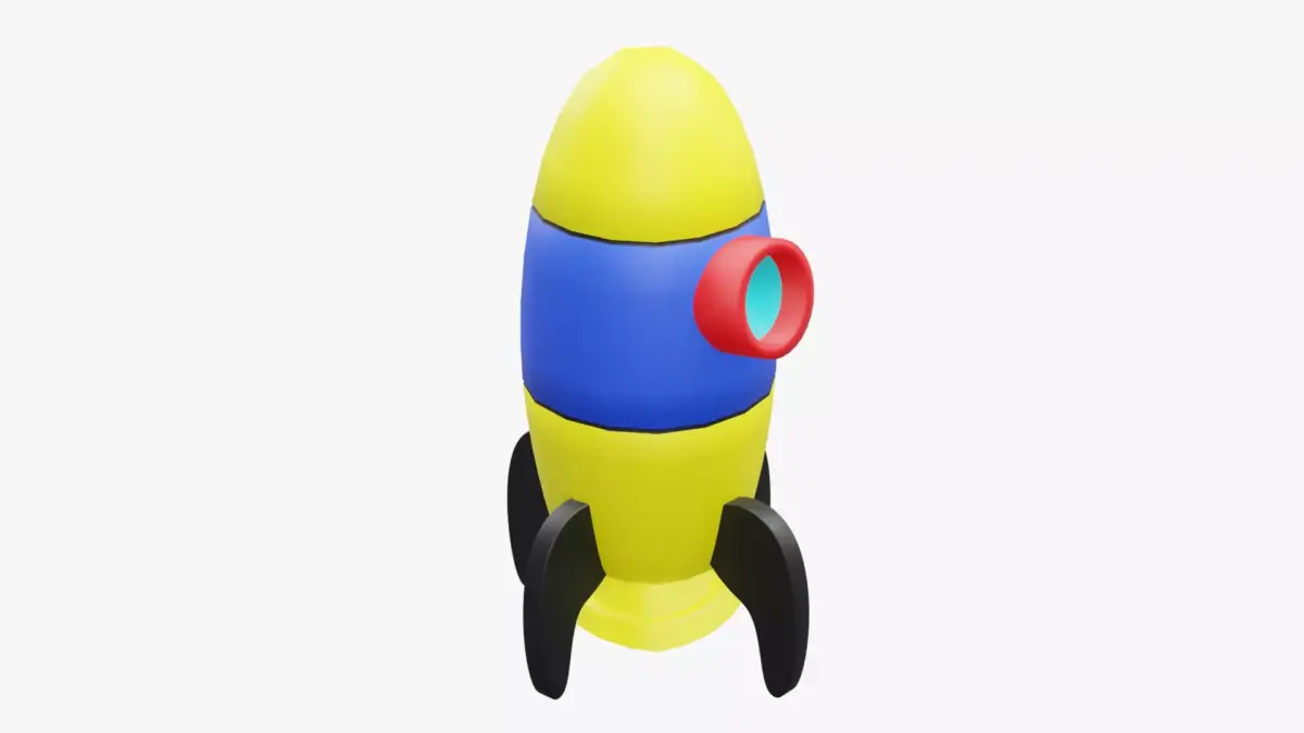 This stylized cartoon rocket model is designed for production use, featuring a low-poly structure with high-detail materials. Created in Blender and rendered with the Cycles/Eevee Render Engine, it's ideal for games, animations, and educational content.
