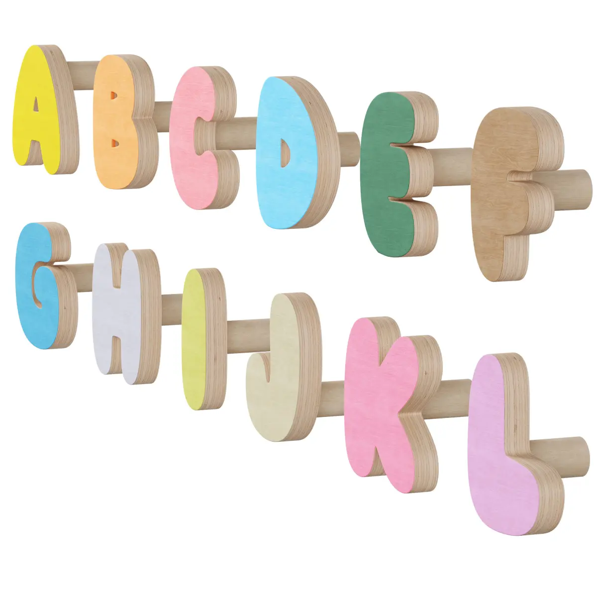 Alphabet Wall Hooks for KidsHandles alphabet for children's furniture