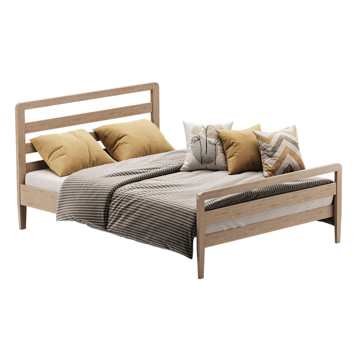 Name: Kids Bed DartyType: modelFormat: 3Ds Max 2016Export: FBX, OBJRender: Corona (10)Polys: 421703Verts: 421953Matclasses: CoronaLegacyMtlUnits: MillimetersDimension: 1728.25 x 2066.14 x 1000.0Description: The Darty kids bed is a charming and functional design featuring a minimalist frame with horizontal slats on both the headboard and footboard. It is available in both neutral grey and natural wood tones, offering versatility for modern or Scandinavian children's interiors. Accented with cozy pillows and striped bedding, the model is perfect for stylized nursery or youth bedroom renders. Detailed in high resolution and rendered in Corona, this bed combines practicality with a warm, inviting aesthetic.