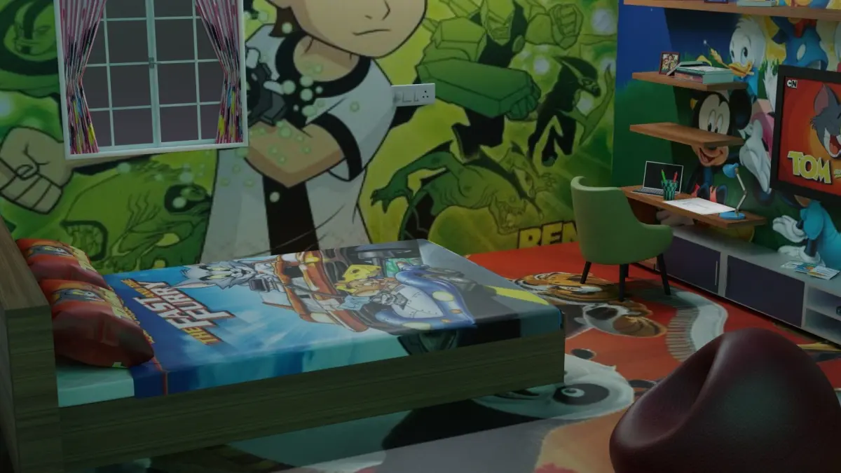KIDS BED ROOM MODEL1.BED2.CHAIR3.TV4.CAPBOARD5.BOOKS6.PHOTO FRAME7.BEAM BAG8.WINDOW 9.SCREEN10.PILLOW11.BED SHEET12.LAPTOP13.PENCIL14.CUP15.PENCIL STAND16.TV REMOTE17.SETA BOX18.SWITCH19.LIGHT20.TABLE LAMP