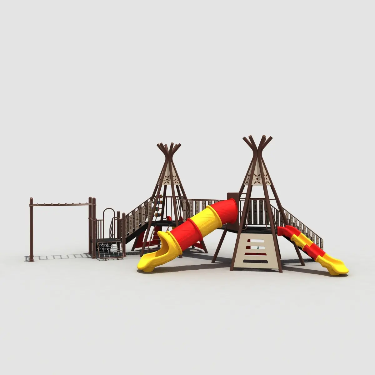 The Indian Tent Farm Climbing and Sliding System is a large-scale children's play equipment used in kindergartens, pre-schools, parks, communities, real estate, resorts and other places.