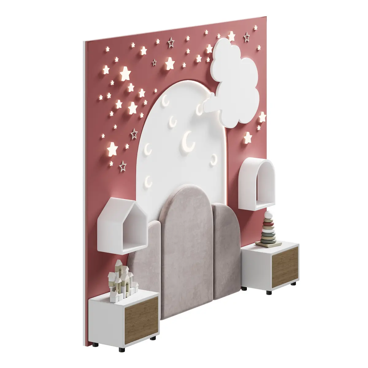 Name: Kids wall panell 3Type: modelFormat: 3Ds Max 2016Export: FBX, OBJRender: Corona (10)Polys: 39324Verts: 39536Matclasses: Multimaterial,CoronaLightMtl,CoronaLegacyMtlUnits: MillimetersDimension: 3301.29 x 493.72 x 3000.34