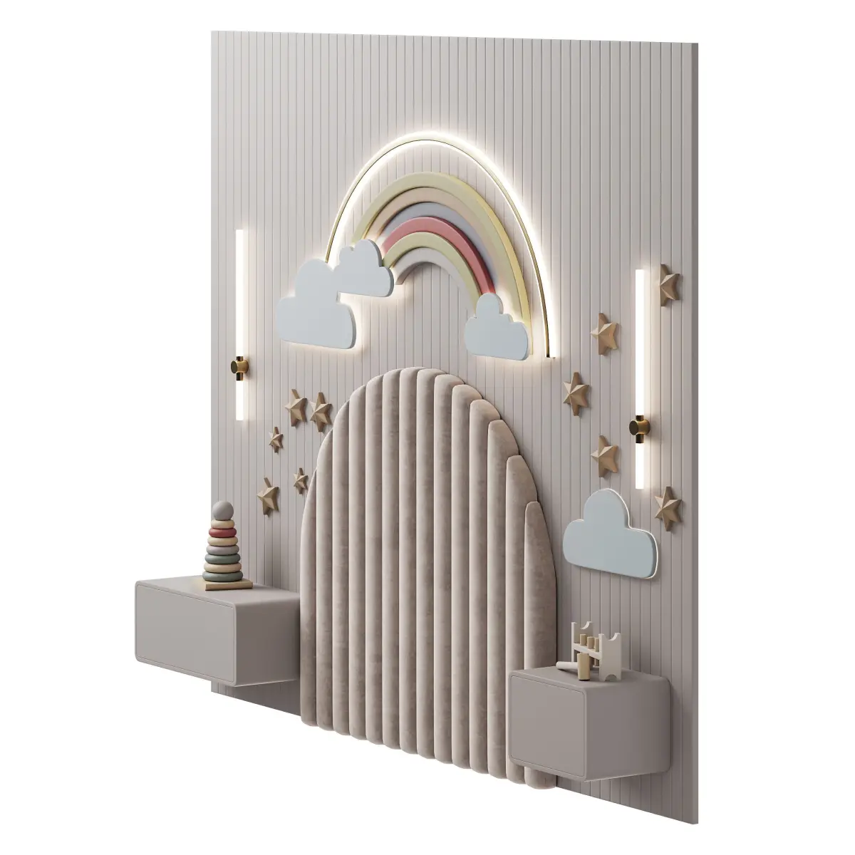 Name: Kids wall panell 4Type: modelFormat: 3Ds Max 2016Export: FBX, OBJRender: Corona (10)Polys: 30454Verts: 30877Matclasses: Multimaterial,CoronaLightMtl,CoronaLegacyMtlUnits: MillimetersDimension: 3600.0 x 429.88 x 3012.49
