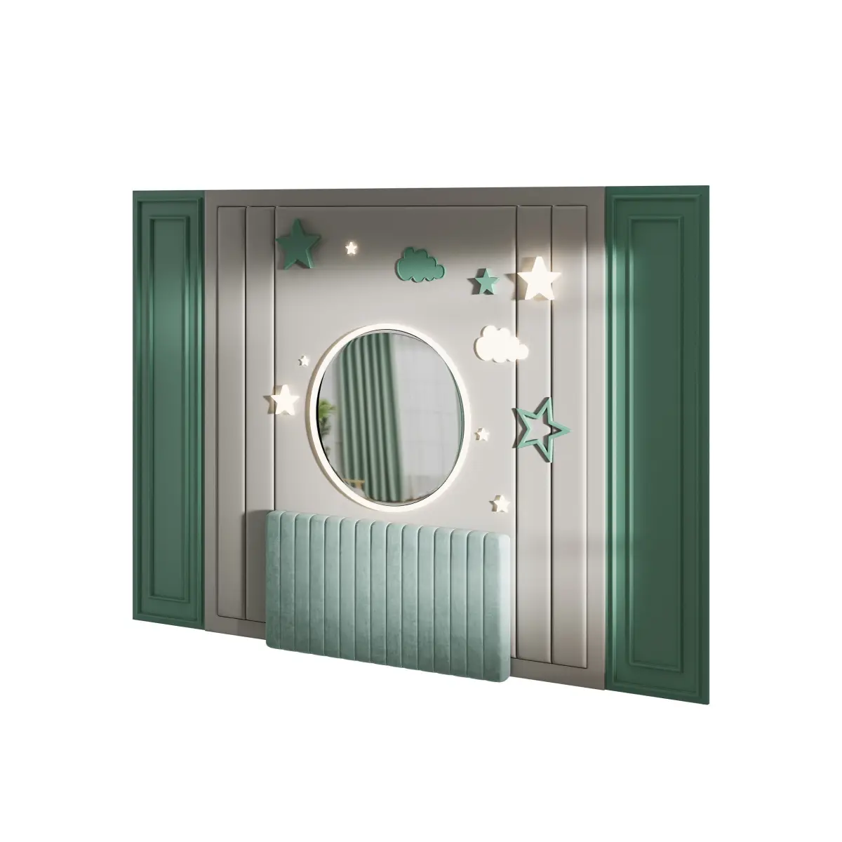 Name: Kids wall panell 6Type: modelFormat: 3Ds Max 2016Export: FBX, OBJRender: Corona (10)Polys: 16888Verts: 16926Matclasses: CoronaLightMtl,CoronaLegacyMtlUnits: MillimetersDimension: 4300.0 x 204.23 x 3021.12Description: