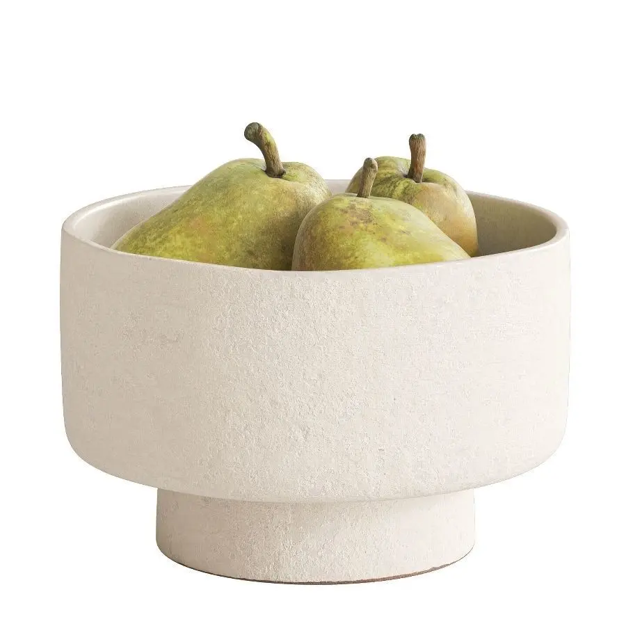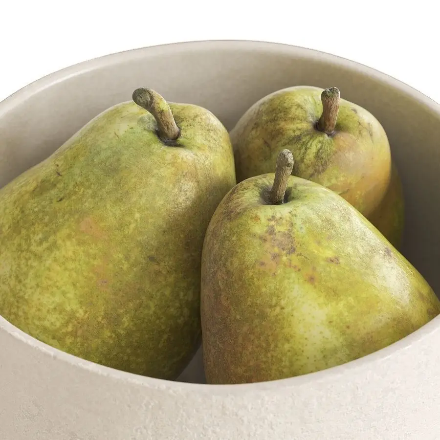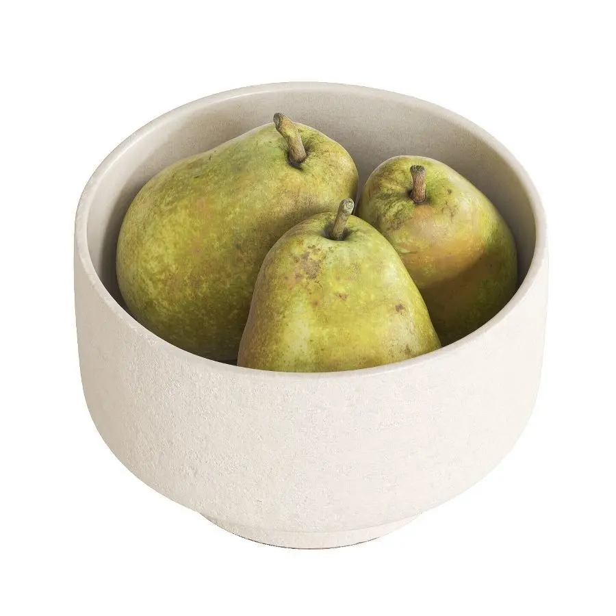Photorealistic, high-quality and accurate 3d model of Kieffer pears in biege ceramic bowl from H&M home based on photogrammetry scanned high poly geometry.