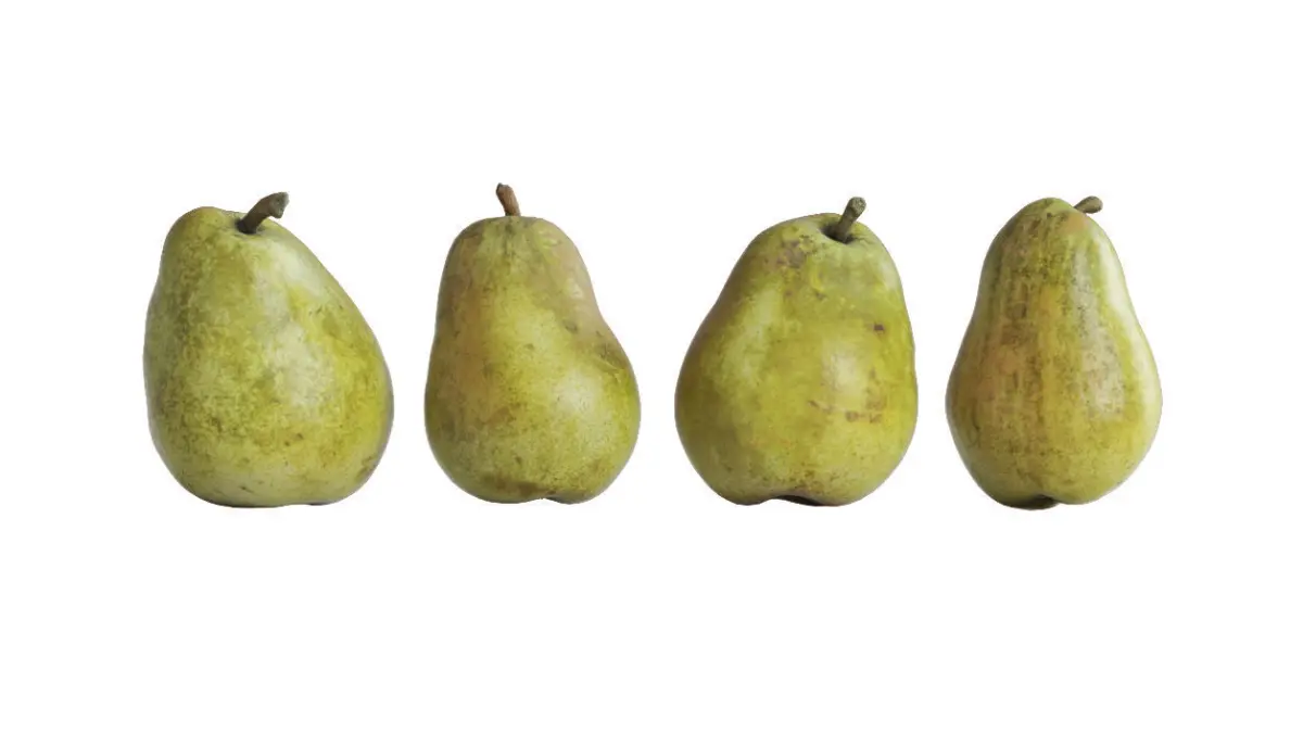 Photorealistic, high-quality and accurate 3d model of kieffer pears in large terracotta bowl from H&M home based on photogrammetry scanned high poly geometry.