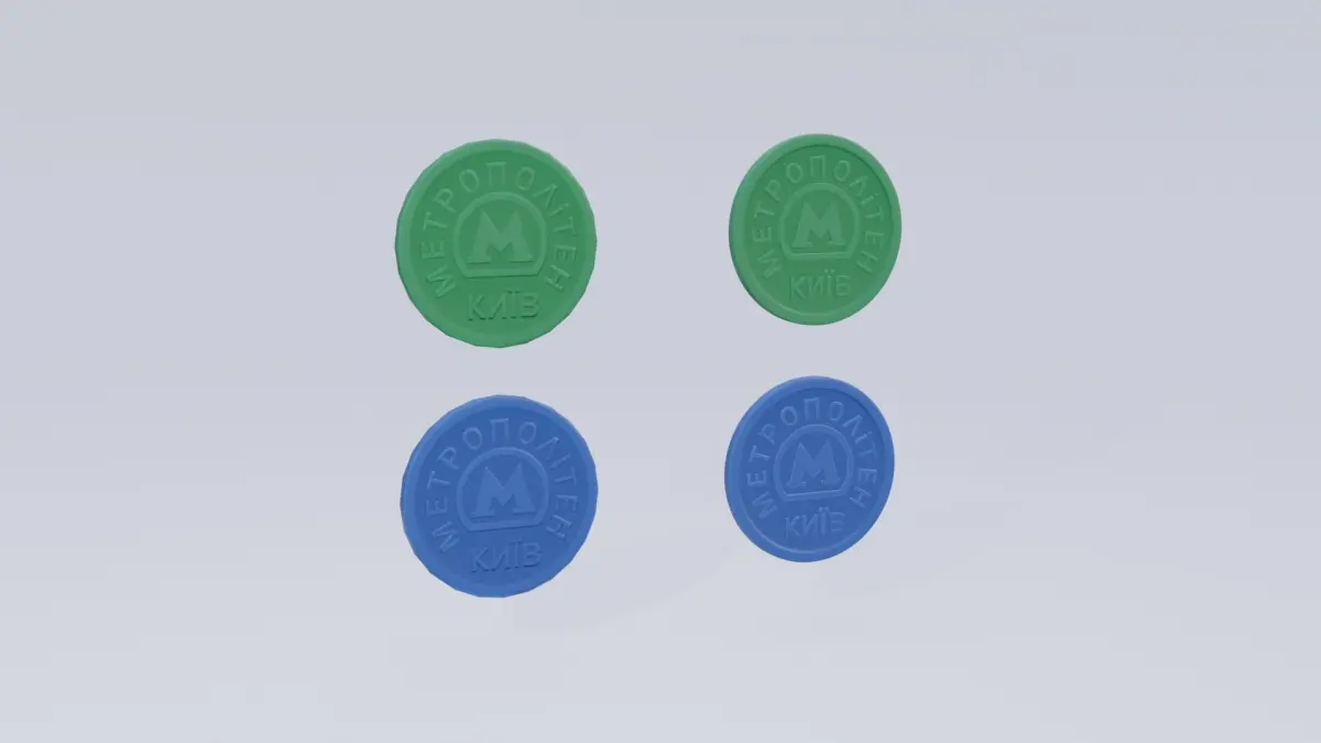 Kiev subway token consists of 2 models: hight poly (polygons 7690 , vertices 7870), low poly (polygons 72 , vertices 50)