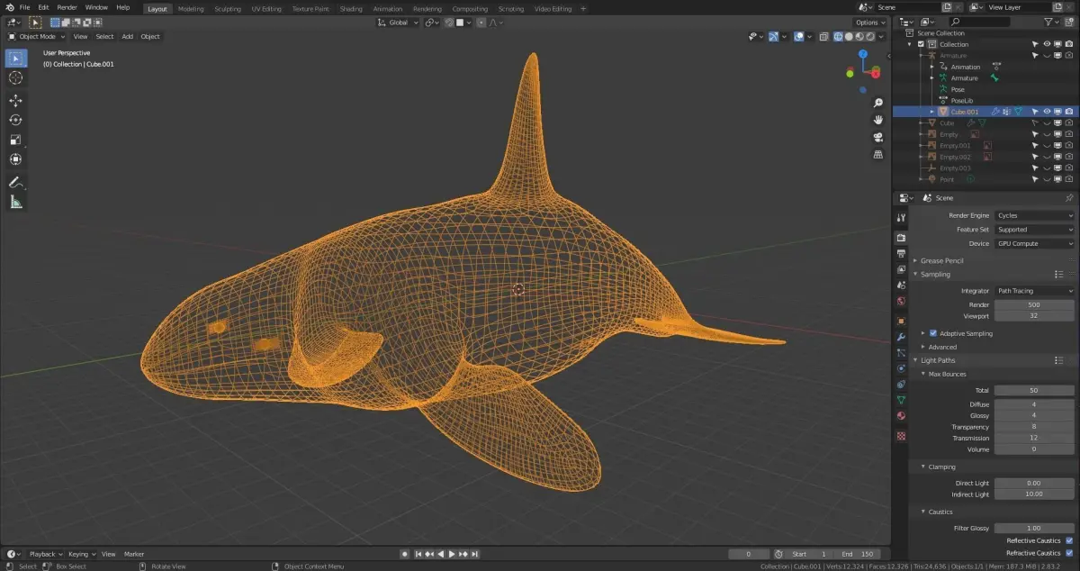 This free download is a low-poly, textured model of the killer whale. I have also added a basic (snake-like rig) which works well for small movements but needs better weighting for any advanced movement, so please forgive me as 3D modelling is not my main skillset, it's just a hobby I enjoy.