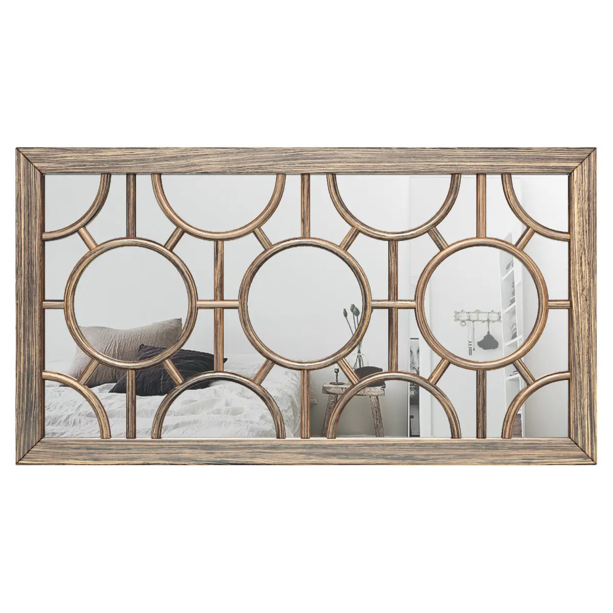 - This charismatic mirror will add a bit of intrigue to your wall decor Features a geometrical circular lattice overlay Includes proper hanging hardware