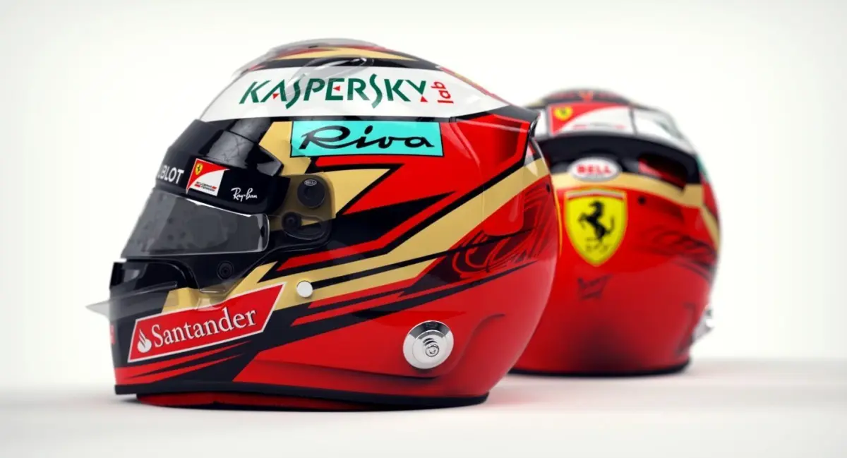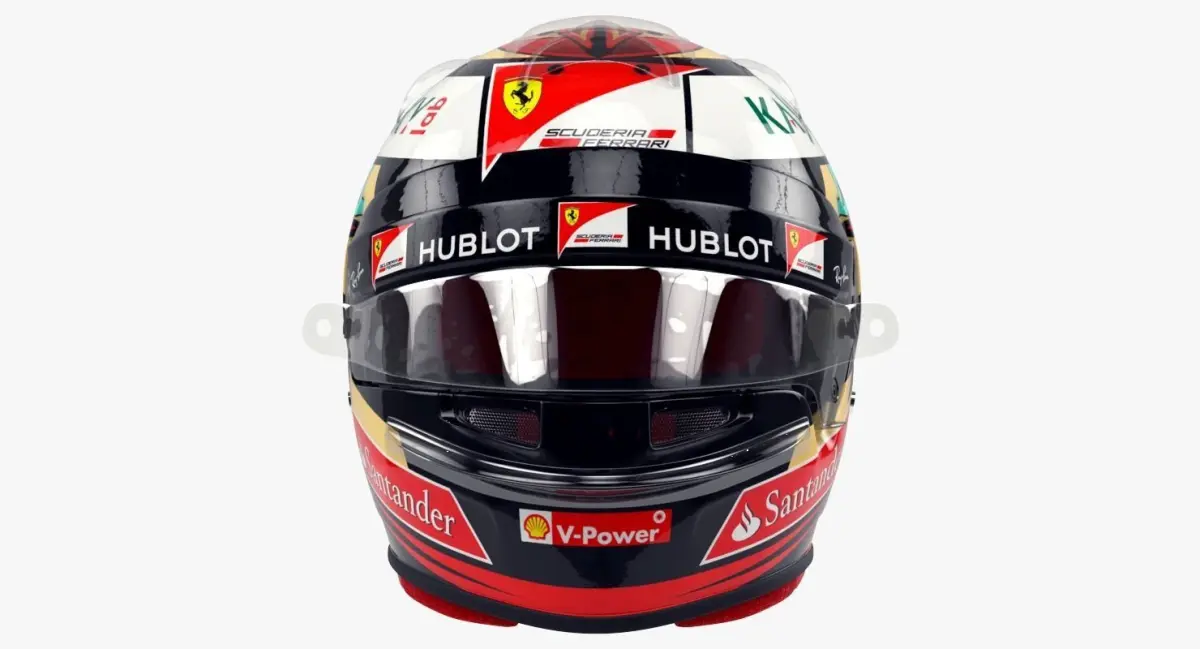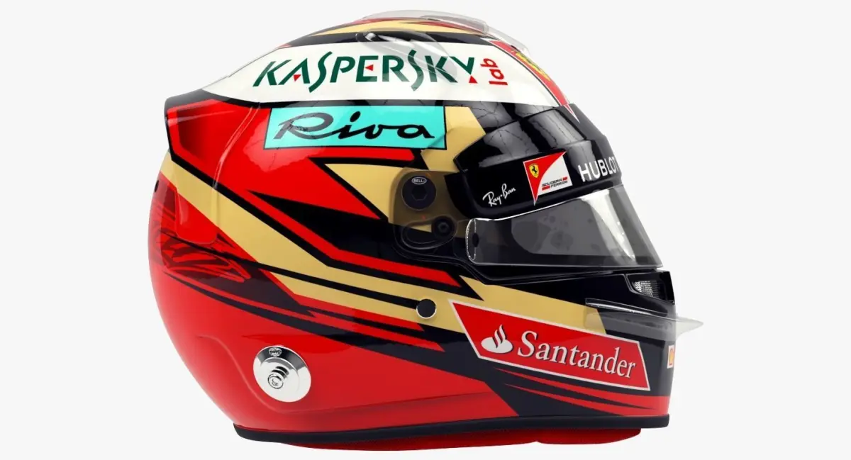 High-poly, ultra-realistic racing helmet model in Kimi Raikkonen 2017 style.