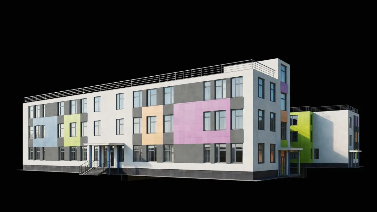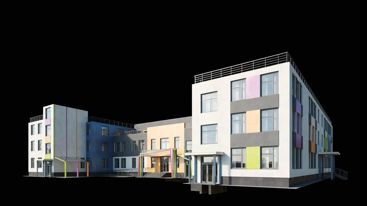 A high-quality visualization model of a public building of a modern kindergarten/school with a small footprint for ease of location on the terrain. The model is assembled as detailed as possible and accurately in real size without the help of any plug-ins. The windows have randomized curtains made with high-quality textures with an Opacity map. Mapping stacks are not collapsed, which will allow you to conveniently edit if necessary.The internal walls of the building are made conditionally without reference to the actual dimensions of the premises.The colors of the facade materials can be changed without problems.For the convenience of working on all objects, there are different Material IDs and, accordingly, one Multi / Sub Object material.The archive contains versions for Vray and Corona, plus an .obj file and high-quality textures.