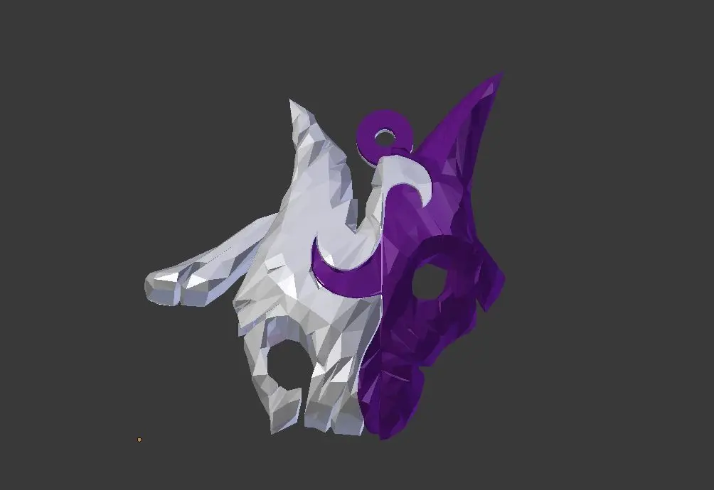 This a Keychain I made from combining the two masks of the League of Legends Champion: Kindred. I 3D printed it with white and purple filament and also a second time with glow in the dark filament, sadly I simply cannot take a better image of it.