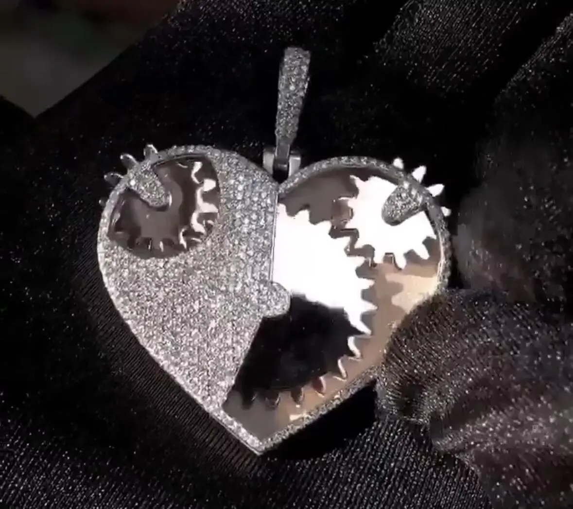 Kinetic Heart Pendant with moving gears. This item was designed, cast in rose gold, and handset with diamonds. Makes a satisfying spinning noise. Fully customizable.