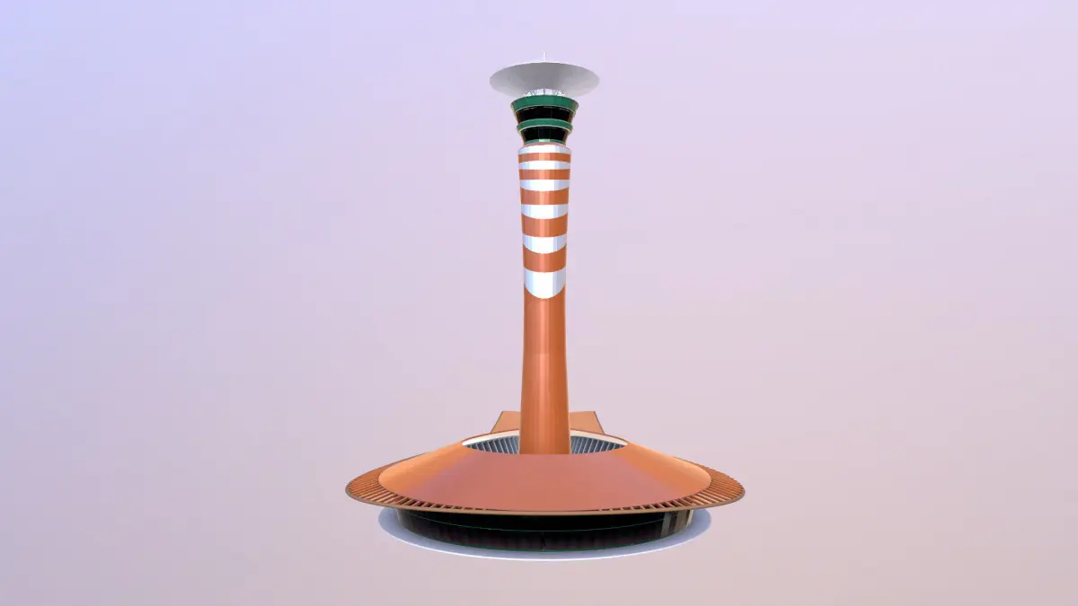 Jeddah King Abdulaziz Airport traffic control Tower Lowpoly model. UV mapped and textured. All 4k PBR textures including; BaseColor, Roughness, Normal, AO, Emission, Opacity, Metalic and Height.Model is 25045 polygons suitable for AR/VR and games