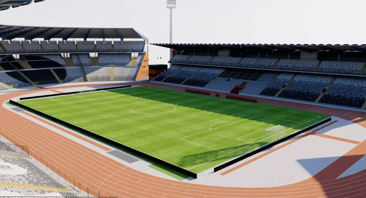 Starter model. Approximate dimensions. Bleachers and seats in 2D texture. Render setup not included.