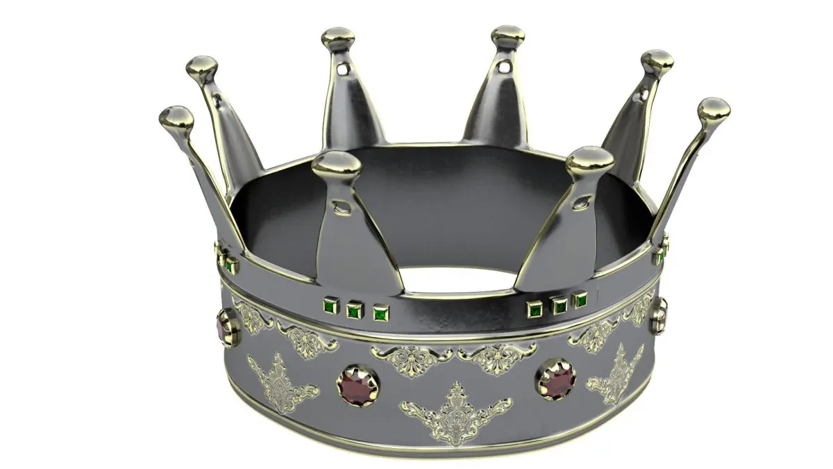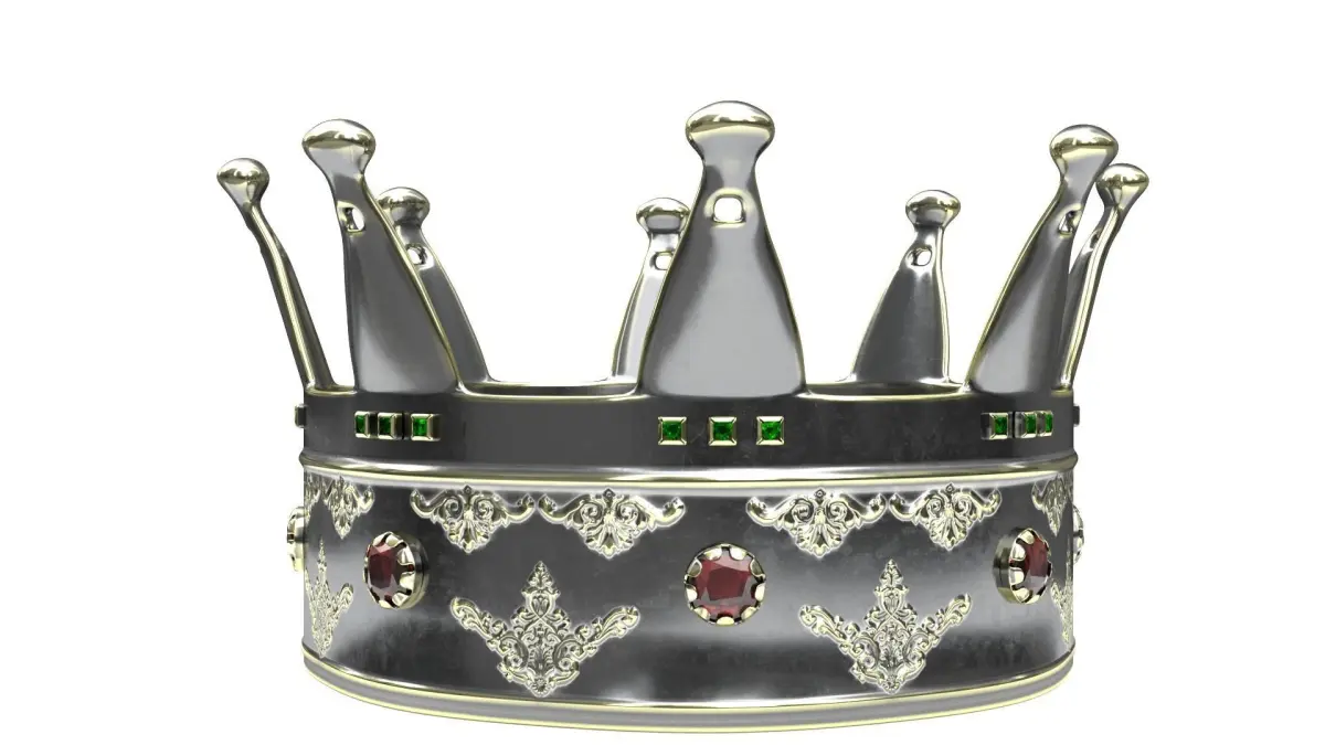 King crownPBR textures in 4K resolutionTextures Albedo, Normal, Roughness, MetallicThe material of the crown is silver with a patina. Rimmed rubies in the center, rimmed emeralds at the top.