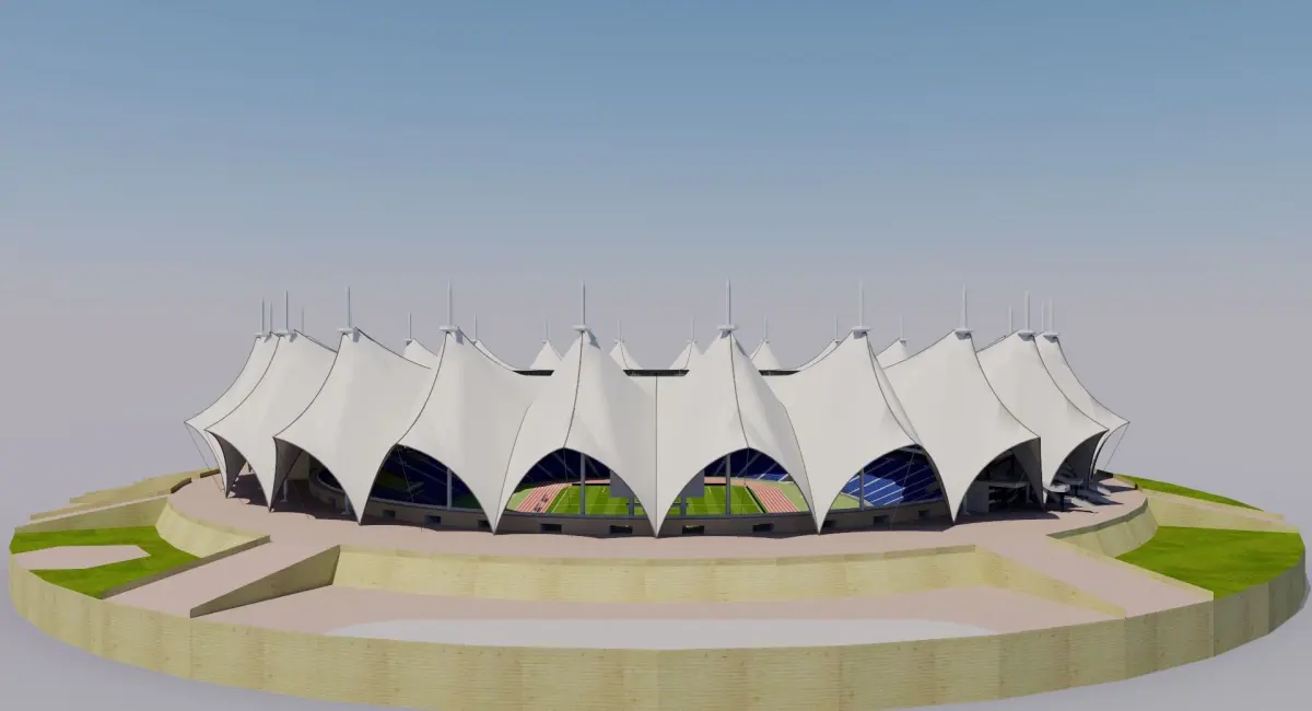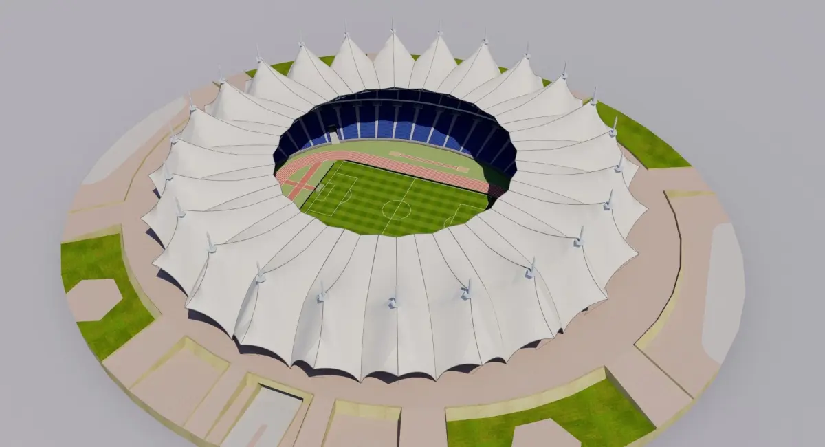 The King Fahd International Stadium also nicknamed Pearl Of Stadiums, in Arabic or simply The Pearl, in Arabic is a multi-purpose stadium in Riyadh, Saudi Arabia. It is currently used mostly for football matches and it also has athletics facilities. The stadium is included in the FIFA football games since FIFA 13, when the Saudi Professional League started being featured in the game. The stadium's roof shades over 67,000 seats and covers an area of 47,000 square feet. The 24 columns are arranged in a circle with a 247-metre diameter. The huge umbrella keeps the sun off the seats and concourse slabs, providing shade and comfort in the hot desert climate.