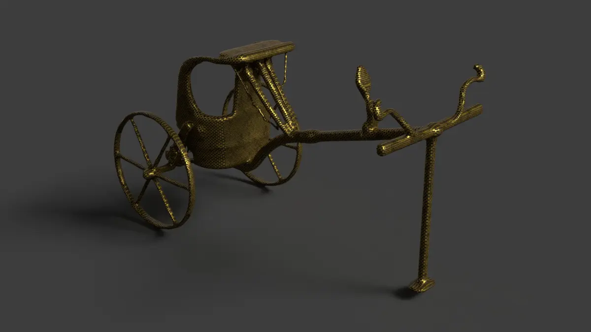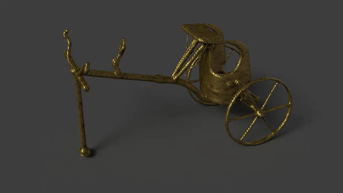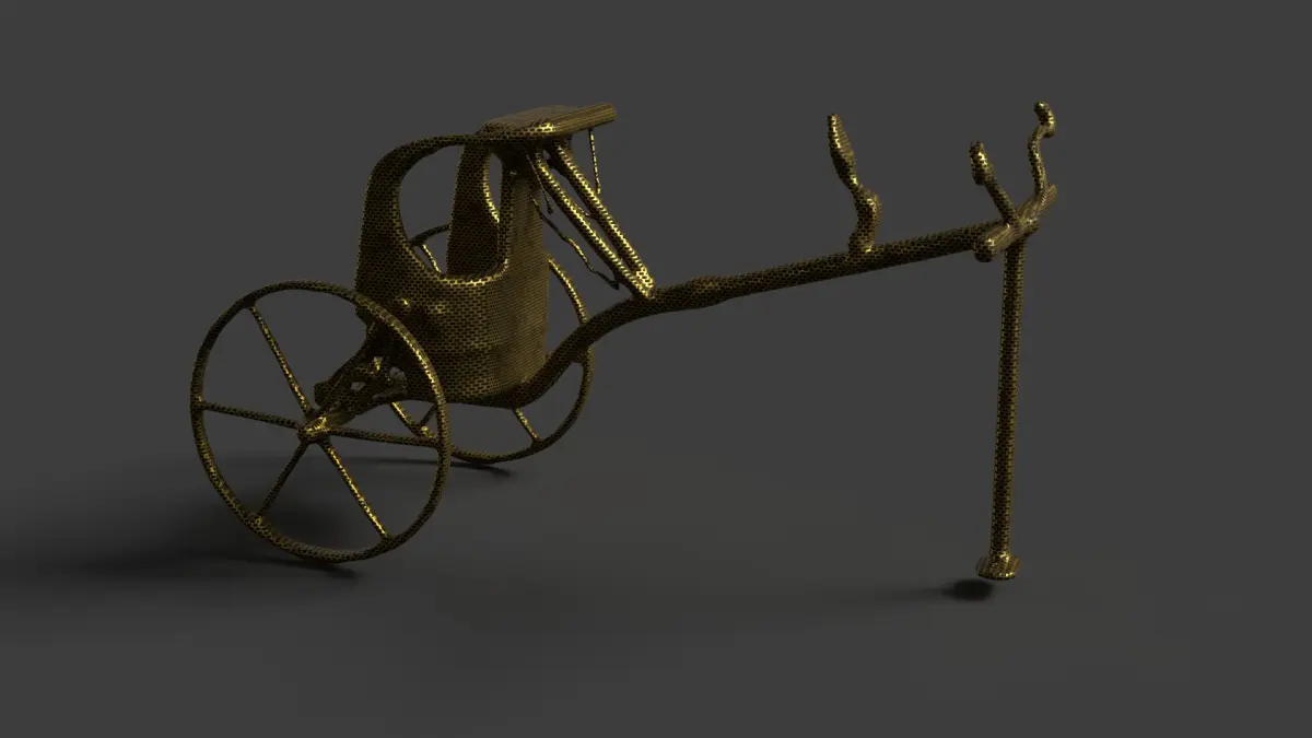 King Tut Chariot figure 3D models created in 3D Max. All scene and texture map are included in Zip file. Final images rendered with v-ray.Available files: grid_gold_king_tut_chariotA zip file