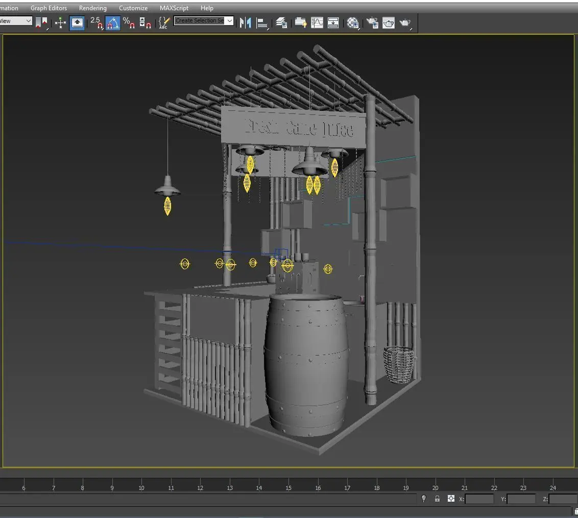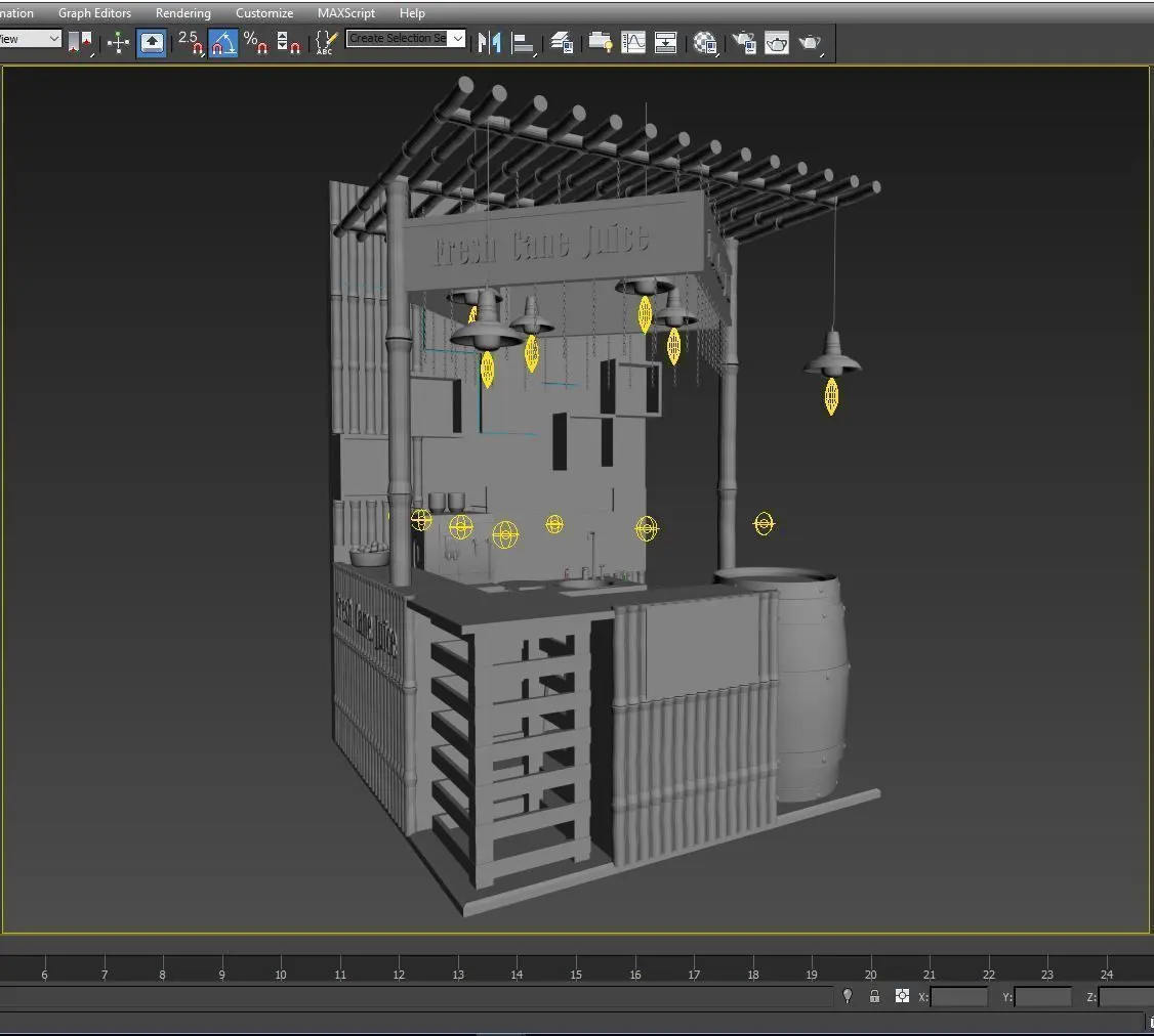 KioskTechnically planned and realistically designed rustic themed juice spot (kiosk).