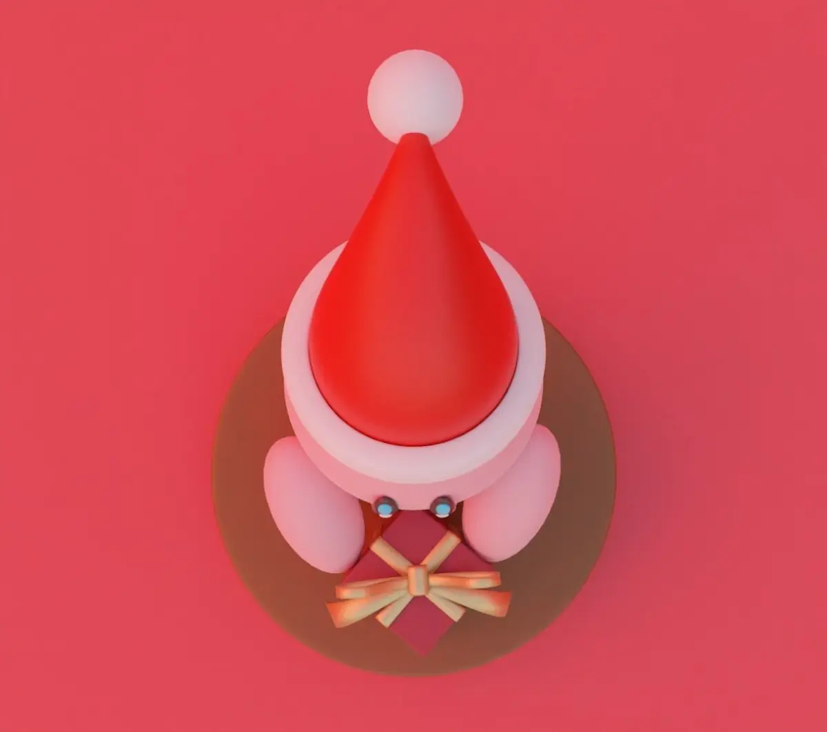 The character model itself is a Kirby 3D printable Christmas themed figurine toy that you can use in your projects, games, animation, design, Christmas themed games, plush toy advertising, Christmas themed interior decoration, etc. d.