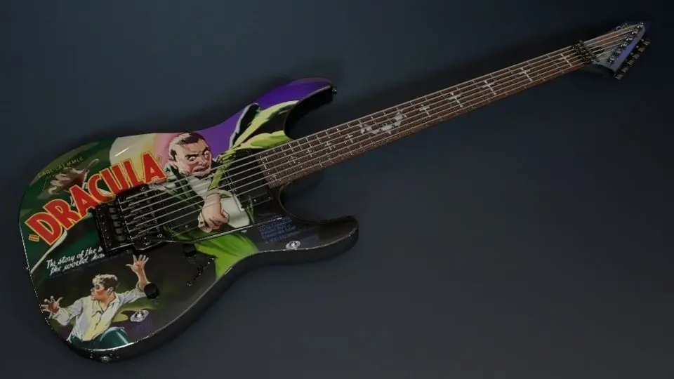 This is a ESP Metallica - Kirk Hammett KH-2 Dracula guitar.