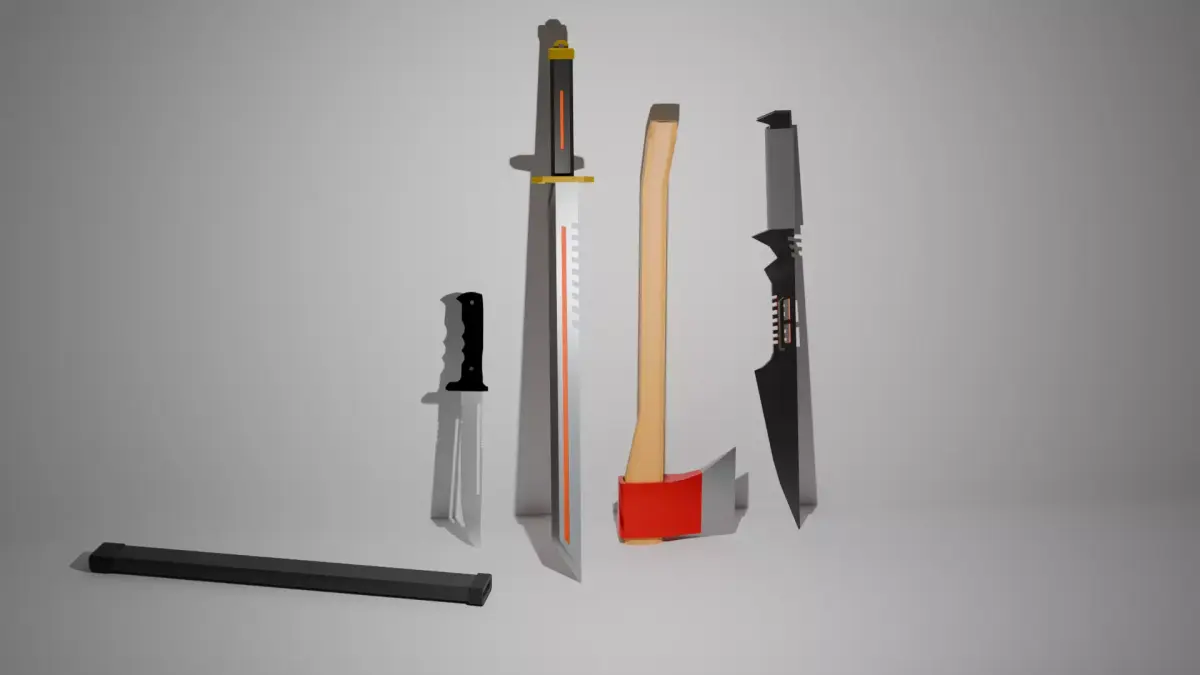 Este pack incluye 4 modelos 3D de armas estilo low poly: espada, hacha, machete y cuchillo. Diseñados en Blender y listos para usar en videojuegos, animaciones o proyectos 3D.El kit contiene: