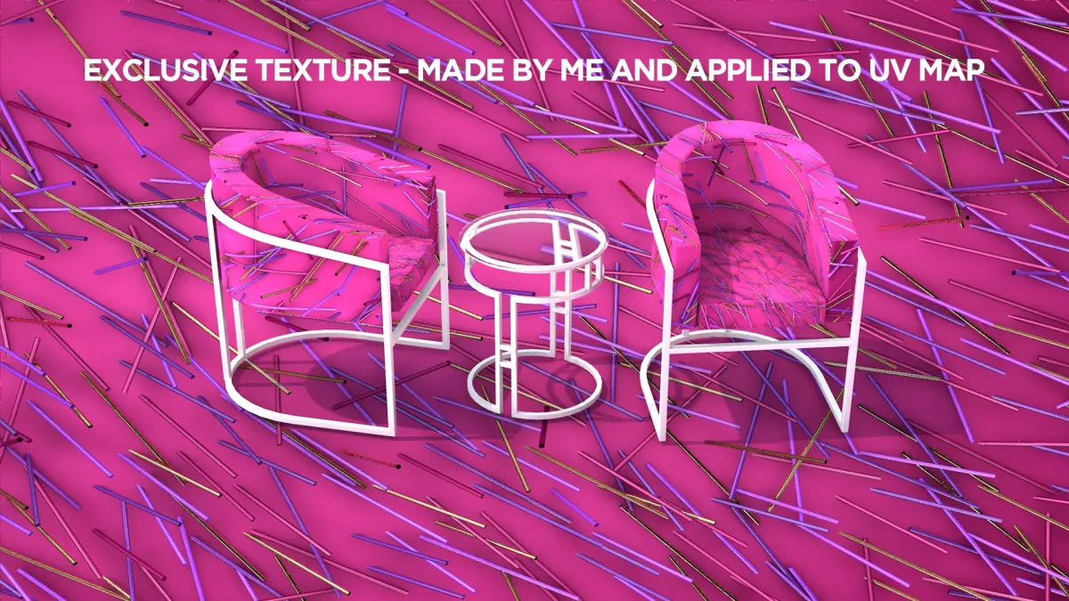 kit sofa alegro pink desenvolvido em cinema4D e exportado para varios arquivos, 3ds, fbx, dae, obj, wrl, dxf e mais.Este kit possui duas poltronas com armação, acento e encosto. A textura é exclusiva de um trabalho artistico que faço com objetos primitivos jogados ao solo. A aplicação da textura é em UV mapping de 4K.Espero que gostem e que seja útil em seu projeto.Obrigado pela visita, renato dalle.