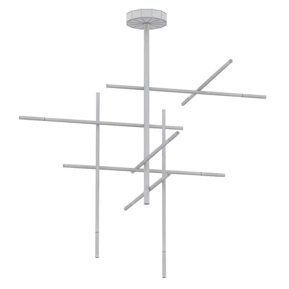 Suspended lamp with diffused light. Polished or matte black nickel, polished gold or light burnished brass structure and satinated glass diffusers.