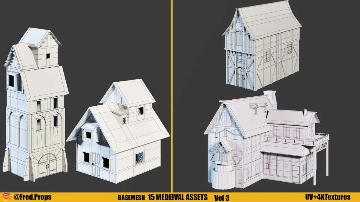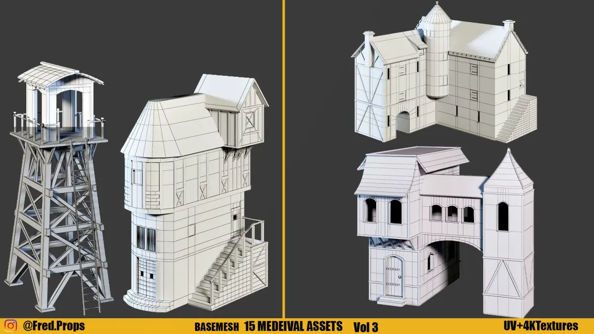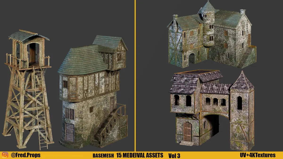 KITBASH Vol 3 : Medieval KIT Including : 15 Models - 15 Texture Sets