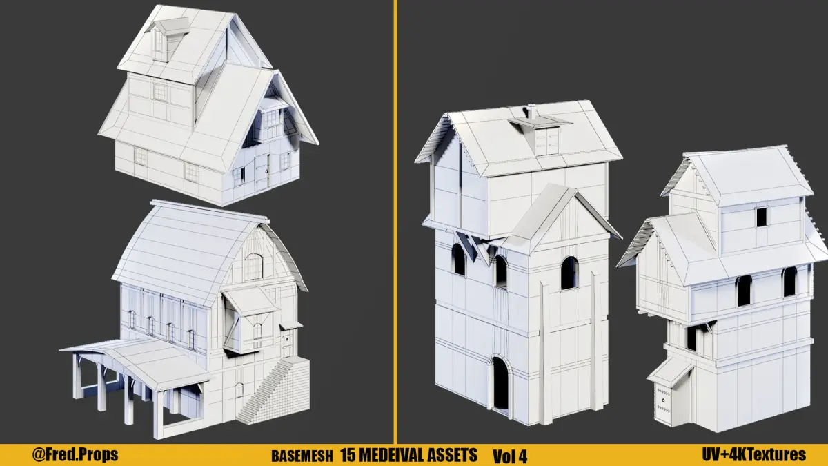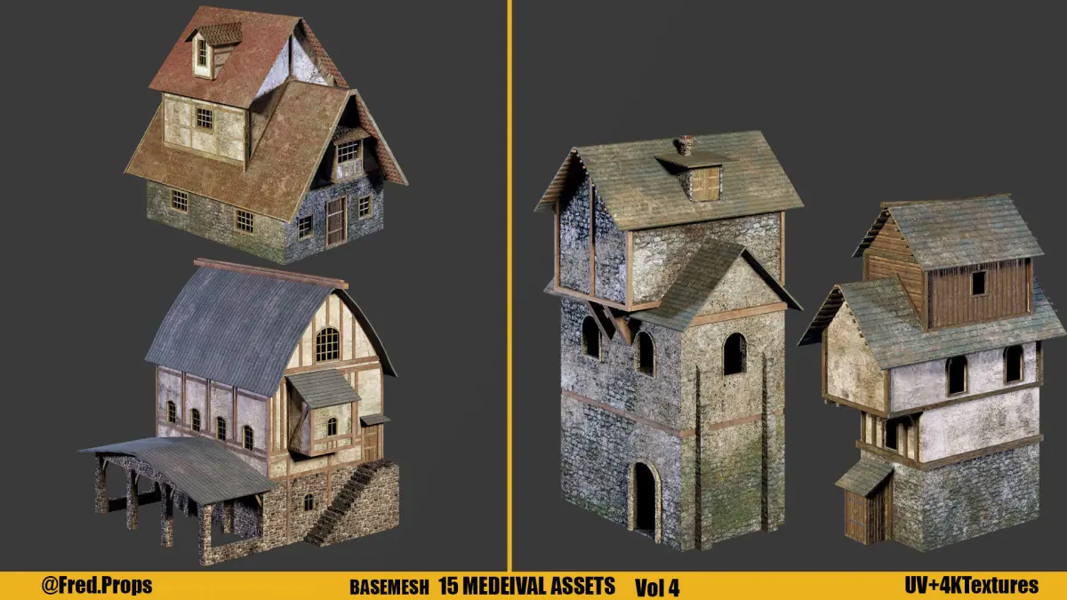 Fred's Environment KITBASH Vol 4 : Medieval KIT Including : 15 Models - 15 Texture Sets