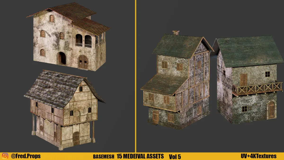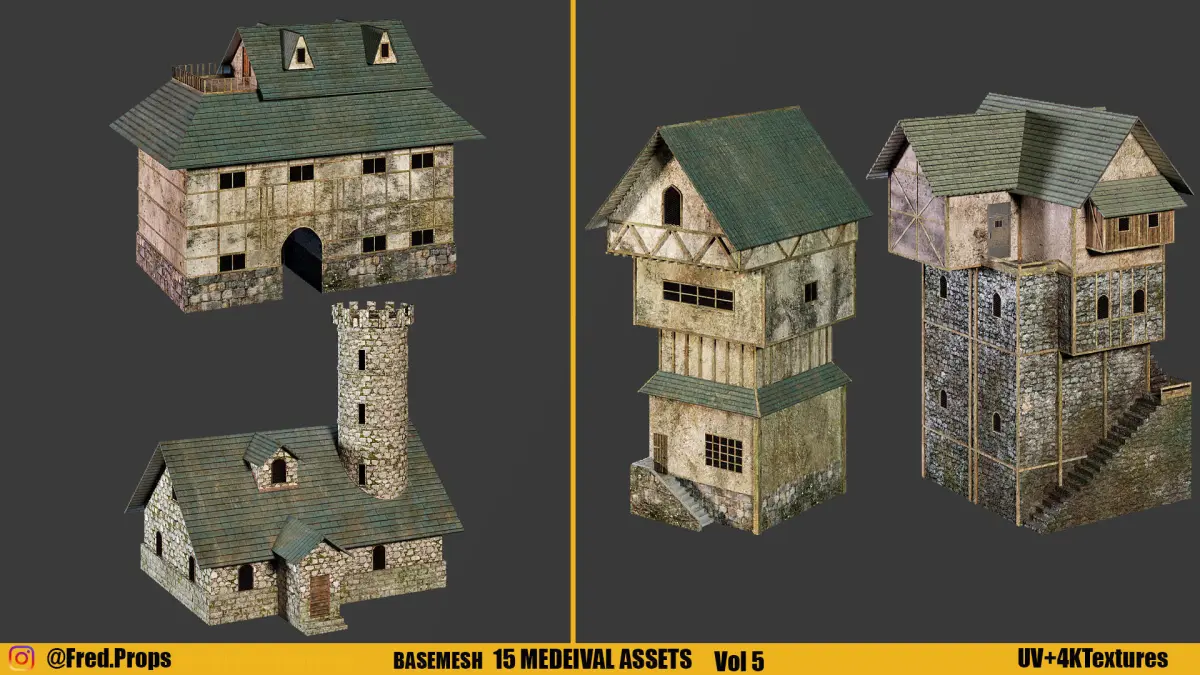 Fred's Environment KITBASH Vol 5 : Medieval KIT Including : 15 Models - 15 Texture Sets