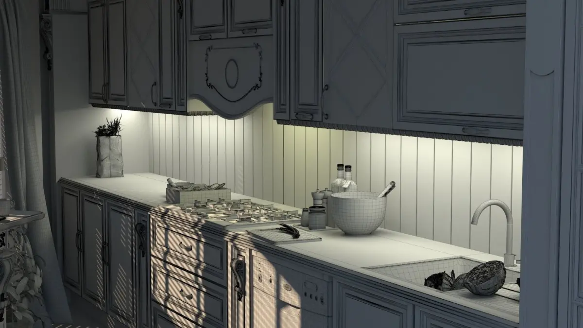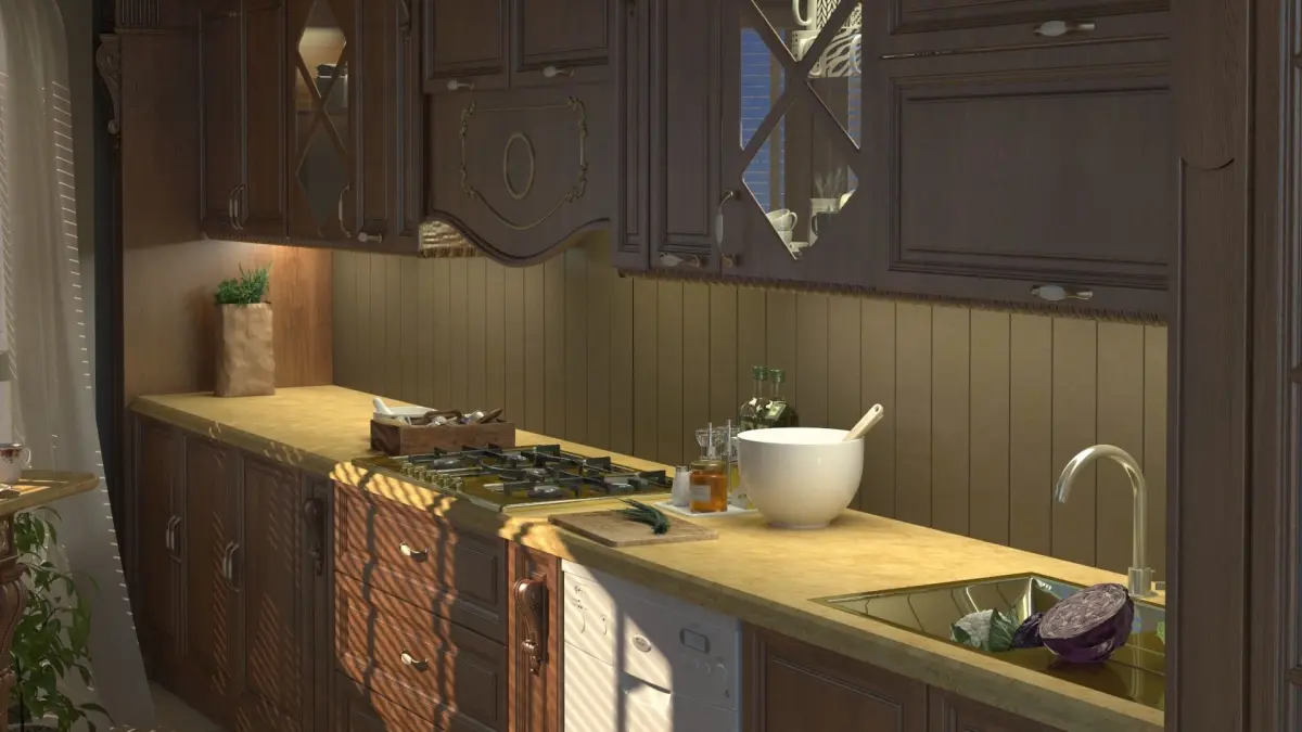 The kitchen is assembled in such a way that you can easily change it to your project.