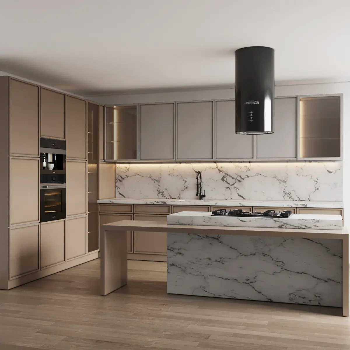 Miele oven(60*60*58)Miele Coffee Maker (45*60*60)Elica island hoodMiele gas hobsink