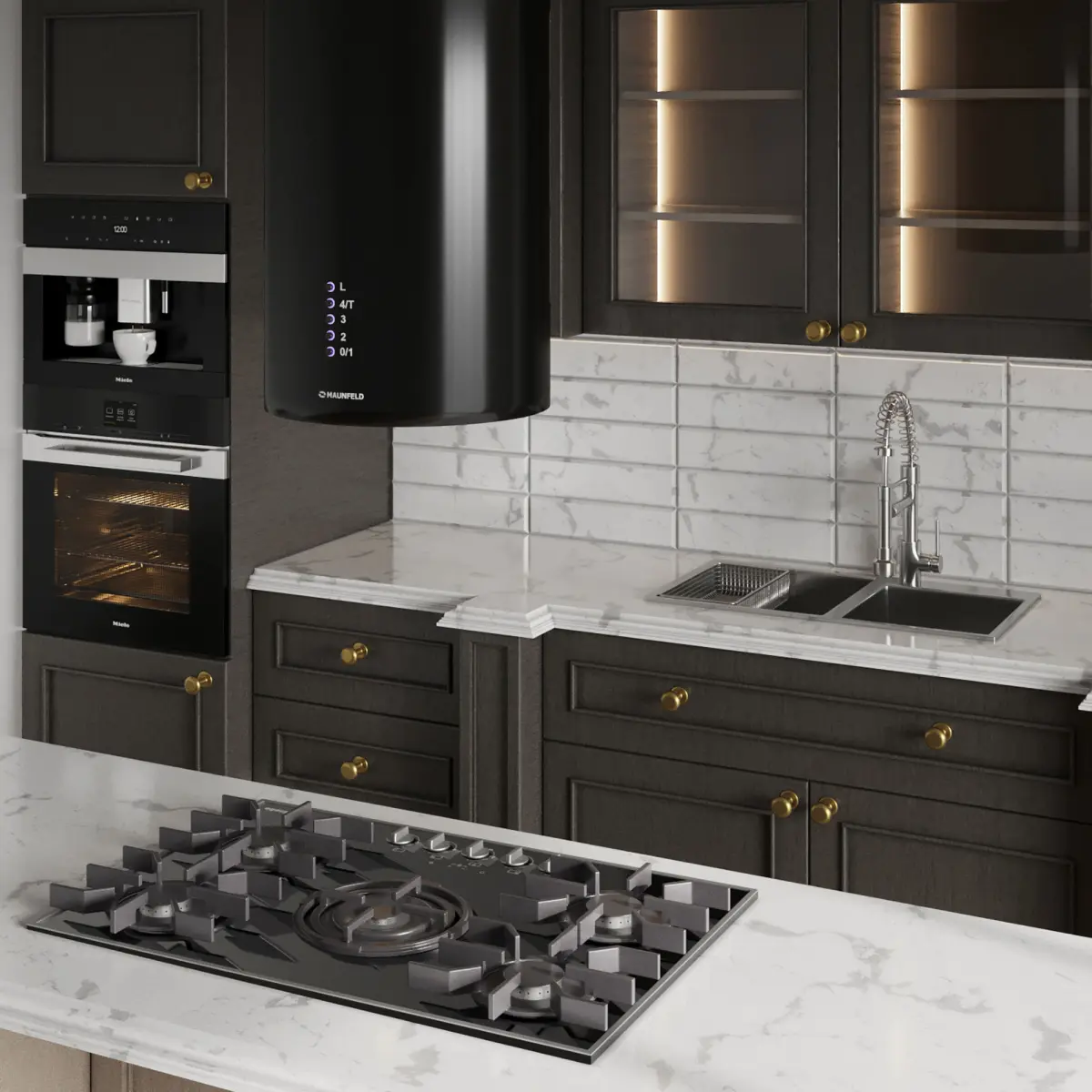 Miele oven(60*60*58)Miele Coffee Maker and warmer (60*60*60)maunfeld island hoodMiele gas hobsink