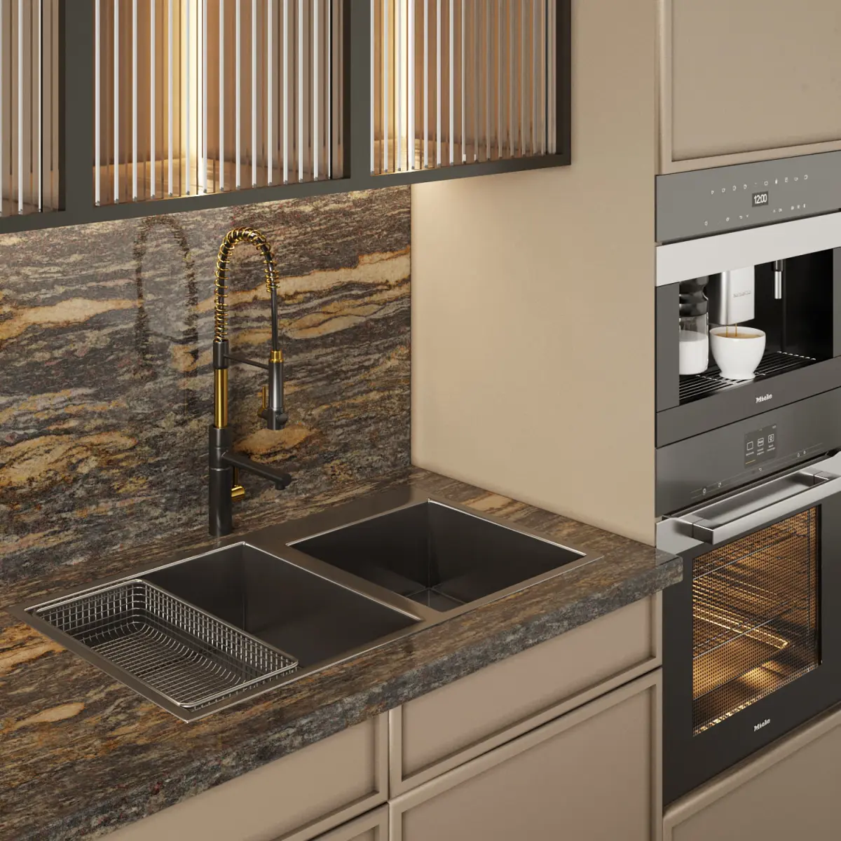 Miele oven(60*60*58)Miele coffee maker (45*60*60)Elica island hoodMiele gas hobsink