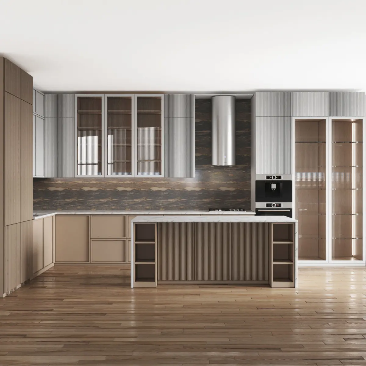 modeling in 3dmax 2018 and save as in max 2015 versionMaterials: wood, stone, metal brass, mdf, glassAll cabinets are made as separate objects, and the kitchen is assembled into a group. The whole kitchen is very easy to edit in size.all appliances are separated and can be used.All parts are logically named to use easily .Do not include floor, ceiling and wallAll items are UVW mapped.Max 2015 - vray 3.6Max 2015 - corona 6obj , fbxpolys:144190verts:148151