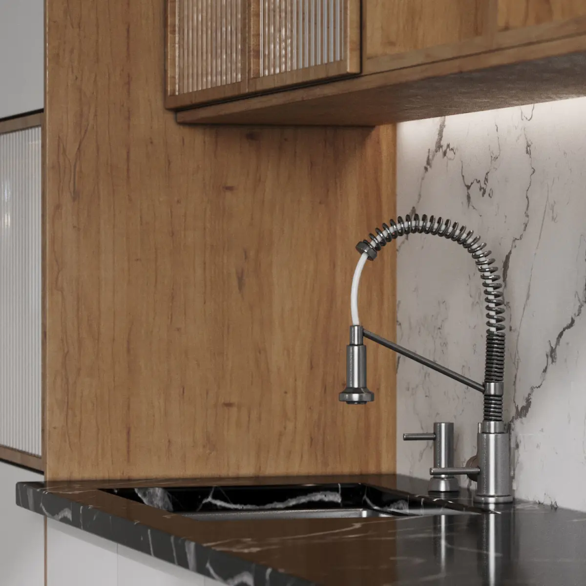 modeling in 3dmax 2018 and save as in max 2015 versionMaterials: white wood, stone, metal brass, mdf, glassAll cabinets are made as separate objects, and the kitchen is assembled into a group. The whole kitchen is very easy to edit in size.all appliances are separated and can be used.All parts are logically named to use easily .Do not include floor, ceiling and wallAll items are UVW mapped.Max 2015 - vray 3.6Max 2015 - corona 6obj , fbxpolys:107315verts:112199