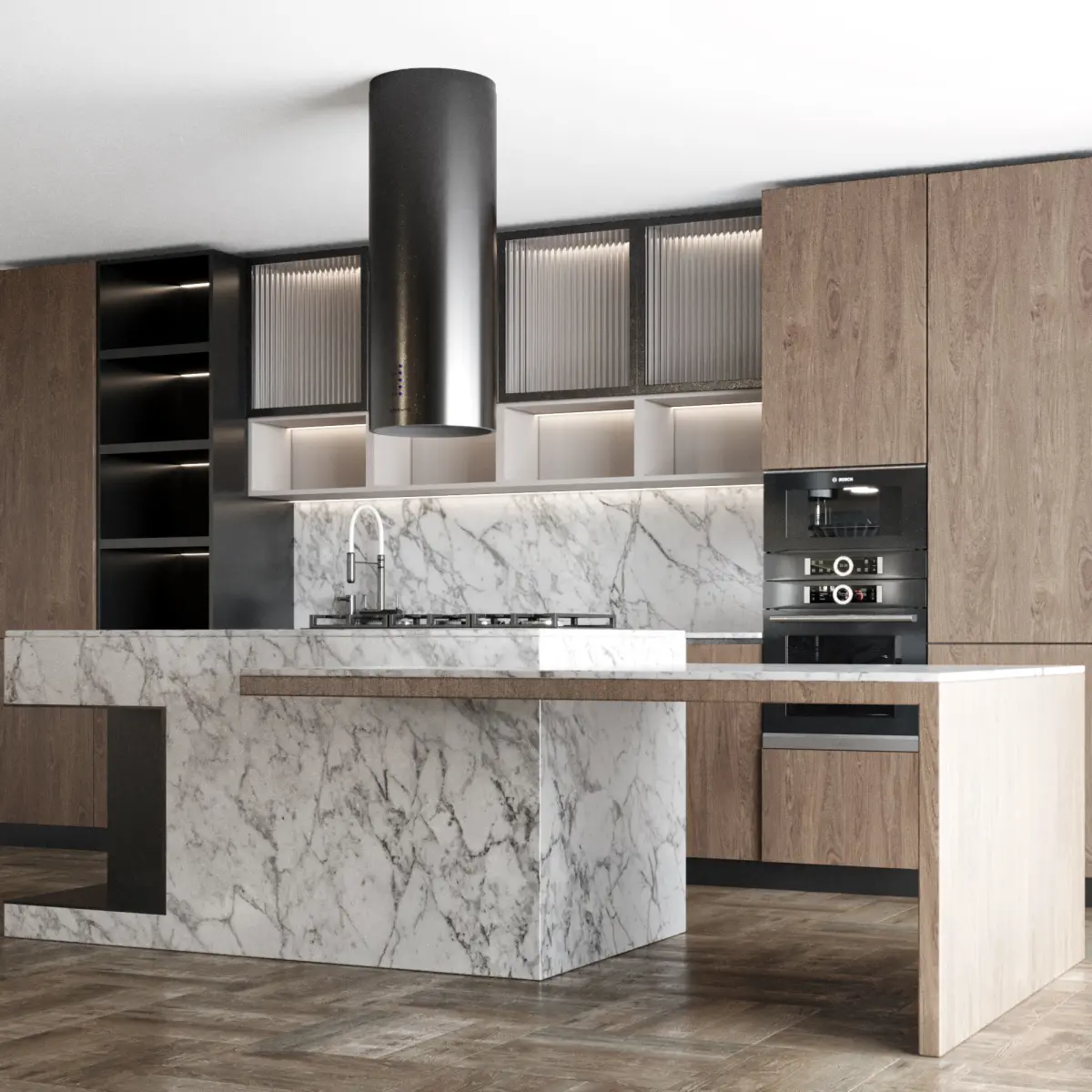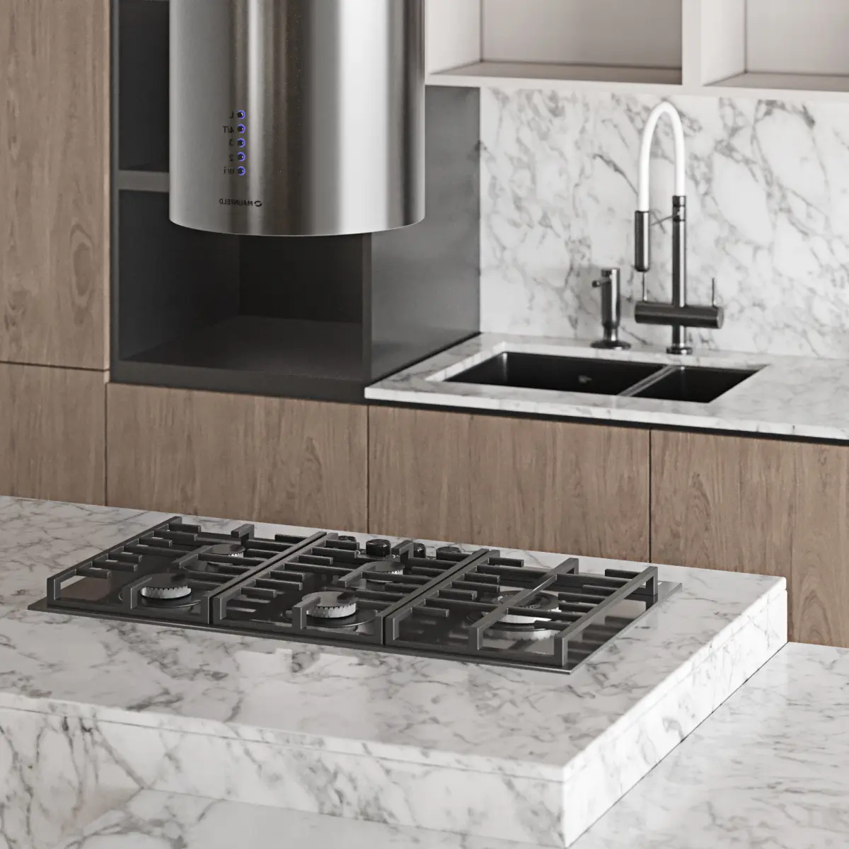 modeling in 3dmax 2018 and save as in max 2015 versionMaterials: white wood, stone, metal brass, mdf, glassAll cabinets are made as separate objects, and the kitchen is assembled into a group. The whole kitchen is very easy to edit in size.all appliances are separated and can be used.All parts are logically named to use easily.Do not include floor, ceiling and wallAll items are UVW mapped.Max 2015 - vray6Max 2015 - corona 6obj, fbxpolicy:118463verts:1224115Those who work in V-Ray versions lower than 3.1, be careful, in the materials in the BRDF section there is Microfaset GTR ( GGX ), if your version is older than 3.1, then the BRDF field will be empty. Choose Blinn, Phong or Ward - whatever suits you best.