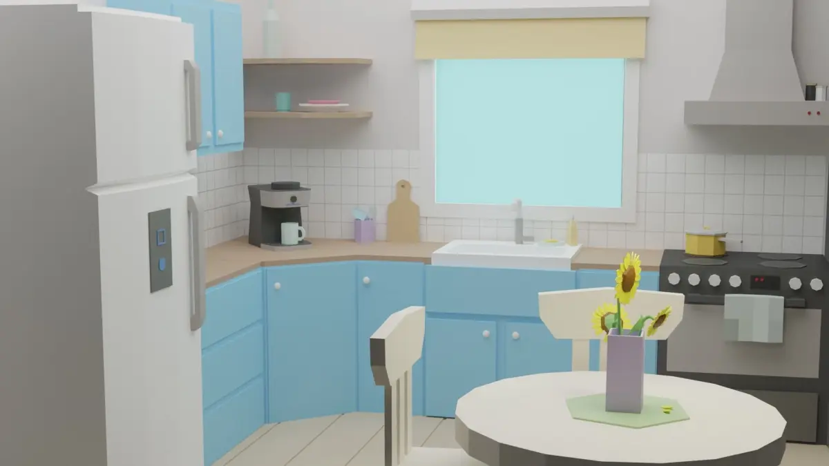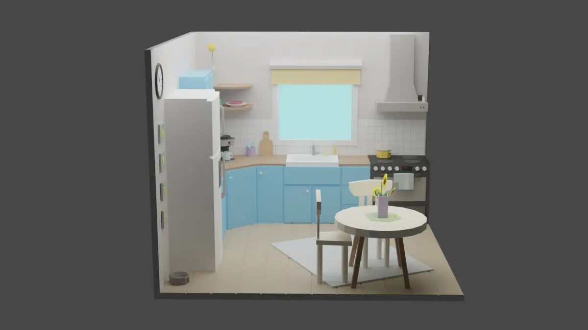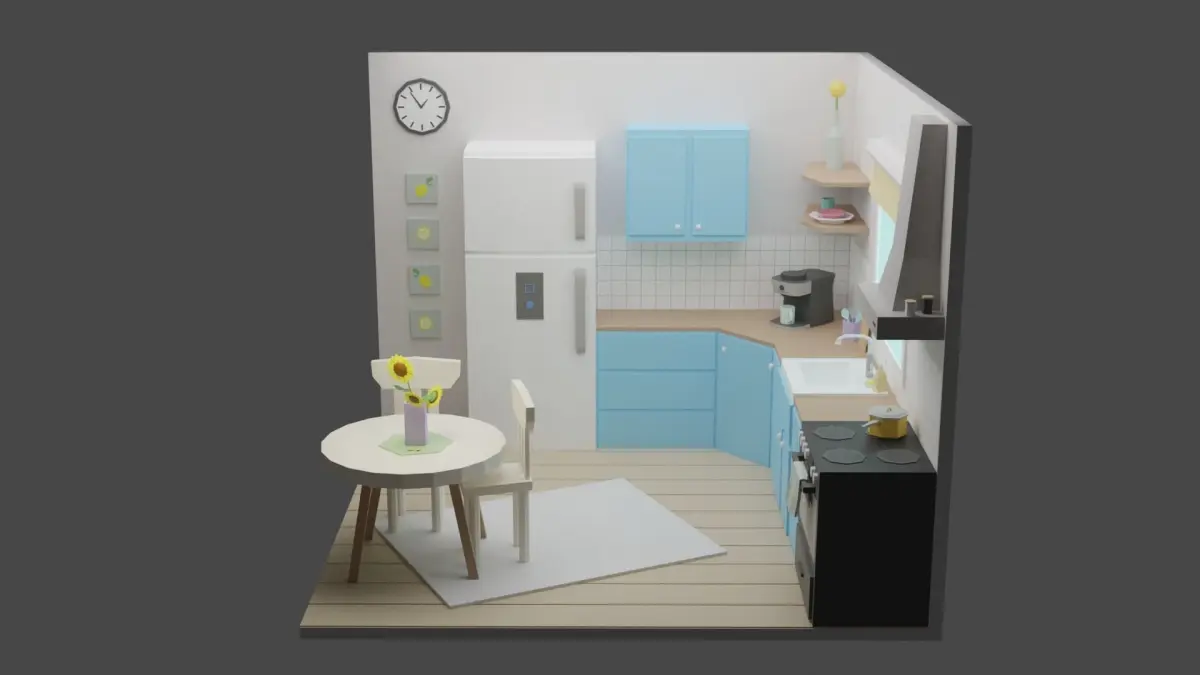 Low poly room is ready to be used for games, rendering and advertising.
