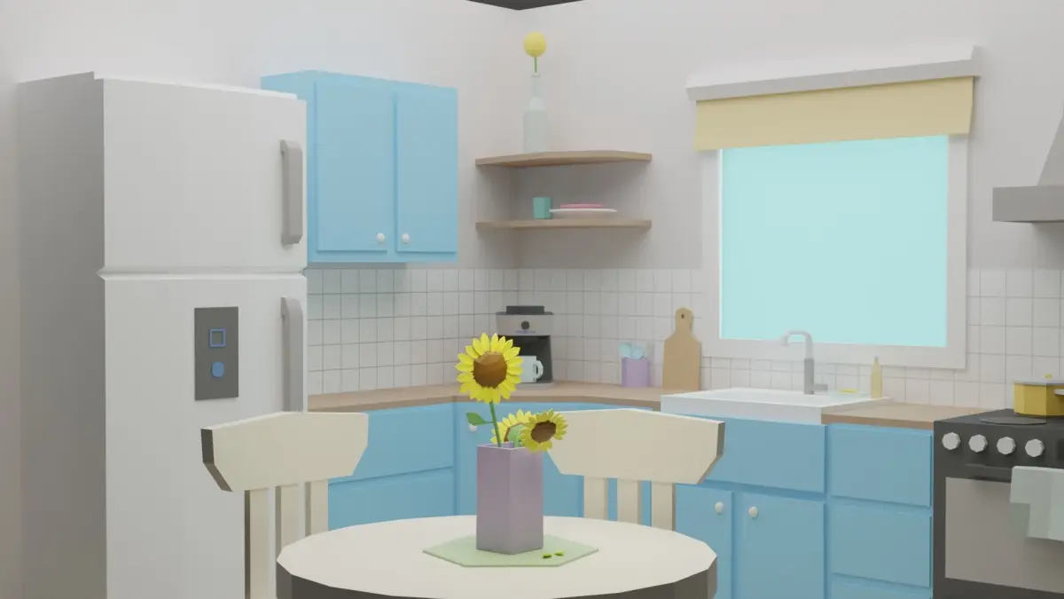This set includes 31 unique props: cabinets / fridge / table / flowers / stove / accessories and much more!