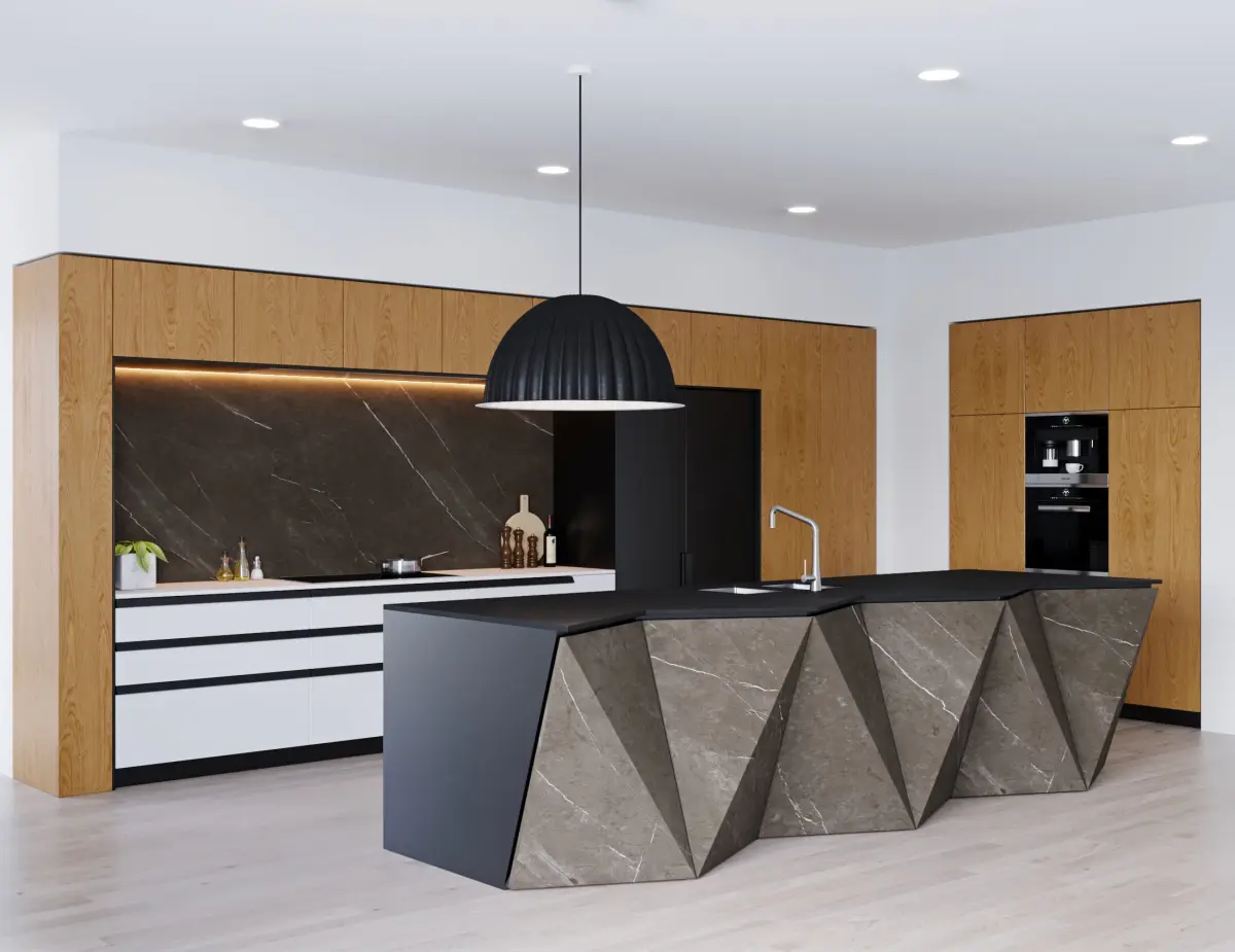 The kitchen is assembled in such a way that you can easily change it to your project.