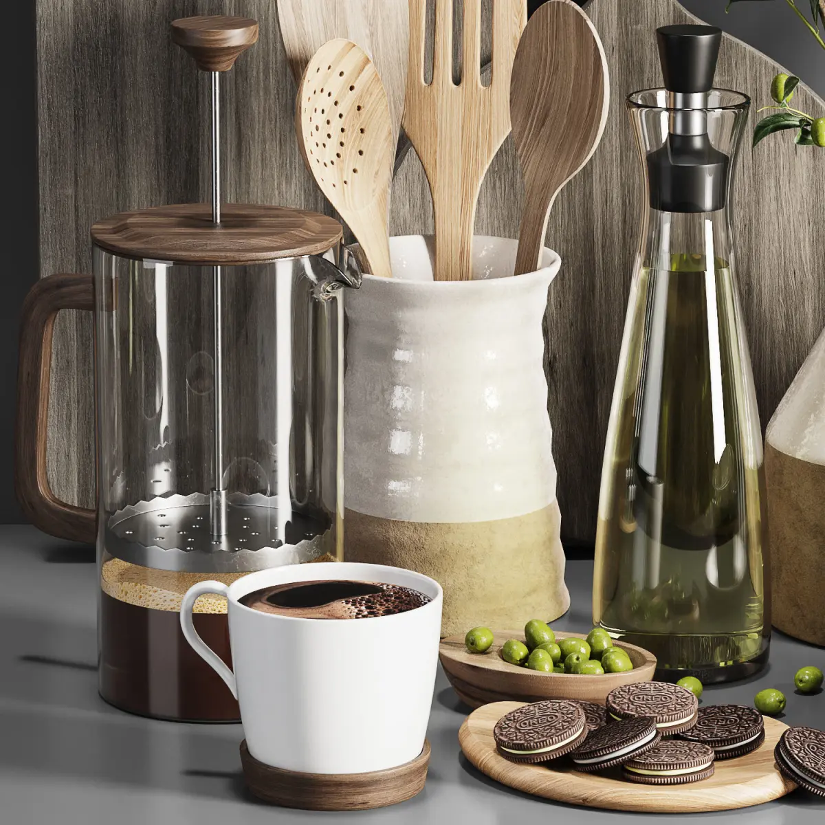 HomeCatalogkitchen accessories 01-Olive set 3D model