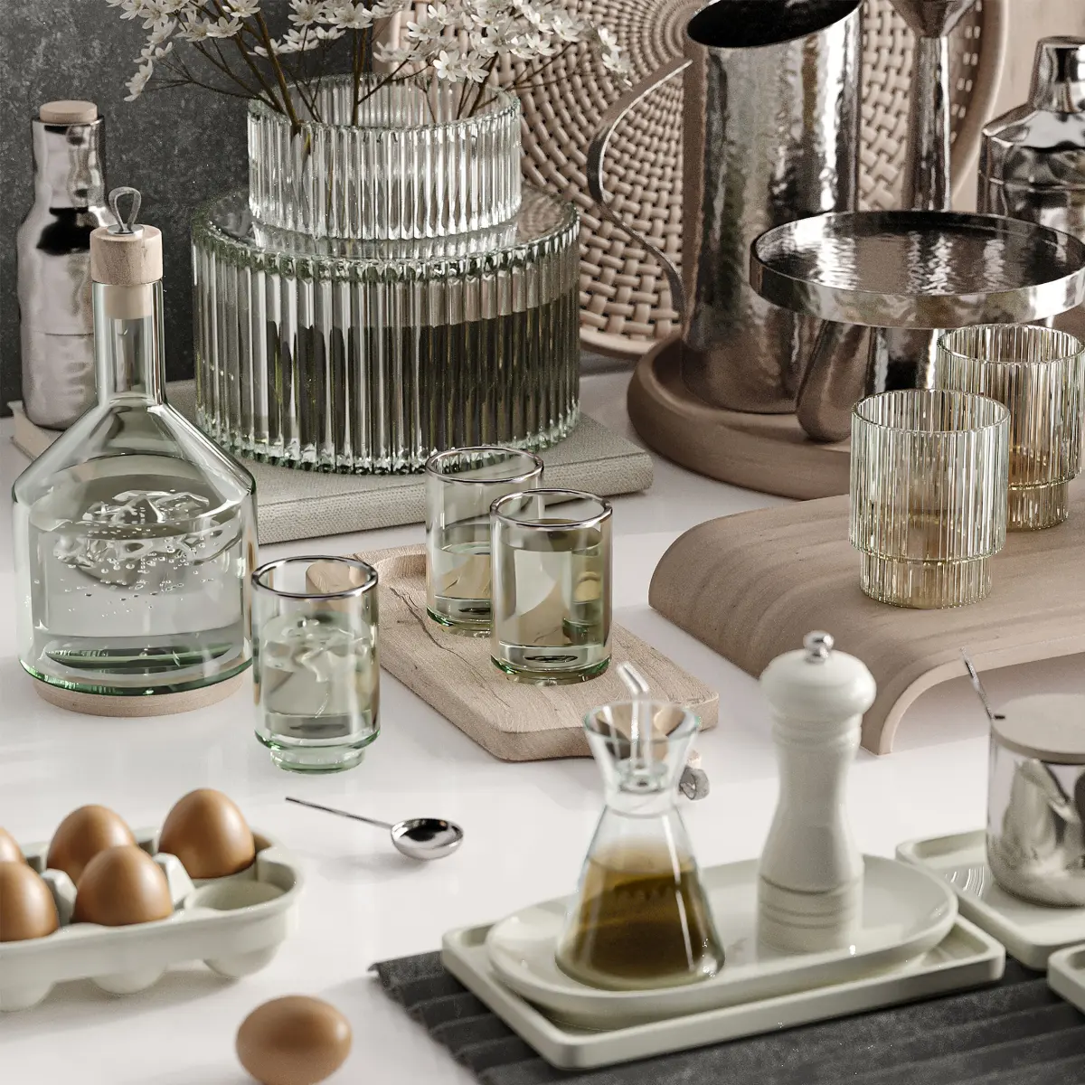 A kitchen set with high material quality and compatibality with all kitchen models and decoration3dsmax version: 2017Formats: 3dsmax + OBJPolys:758.383Units: CentimetersXform: yesRender: Corona + VrayRender view: Corona