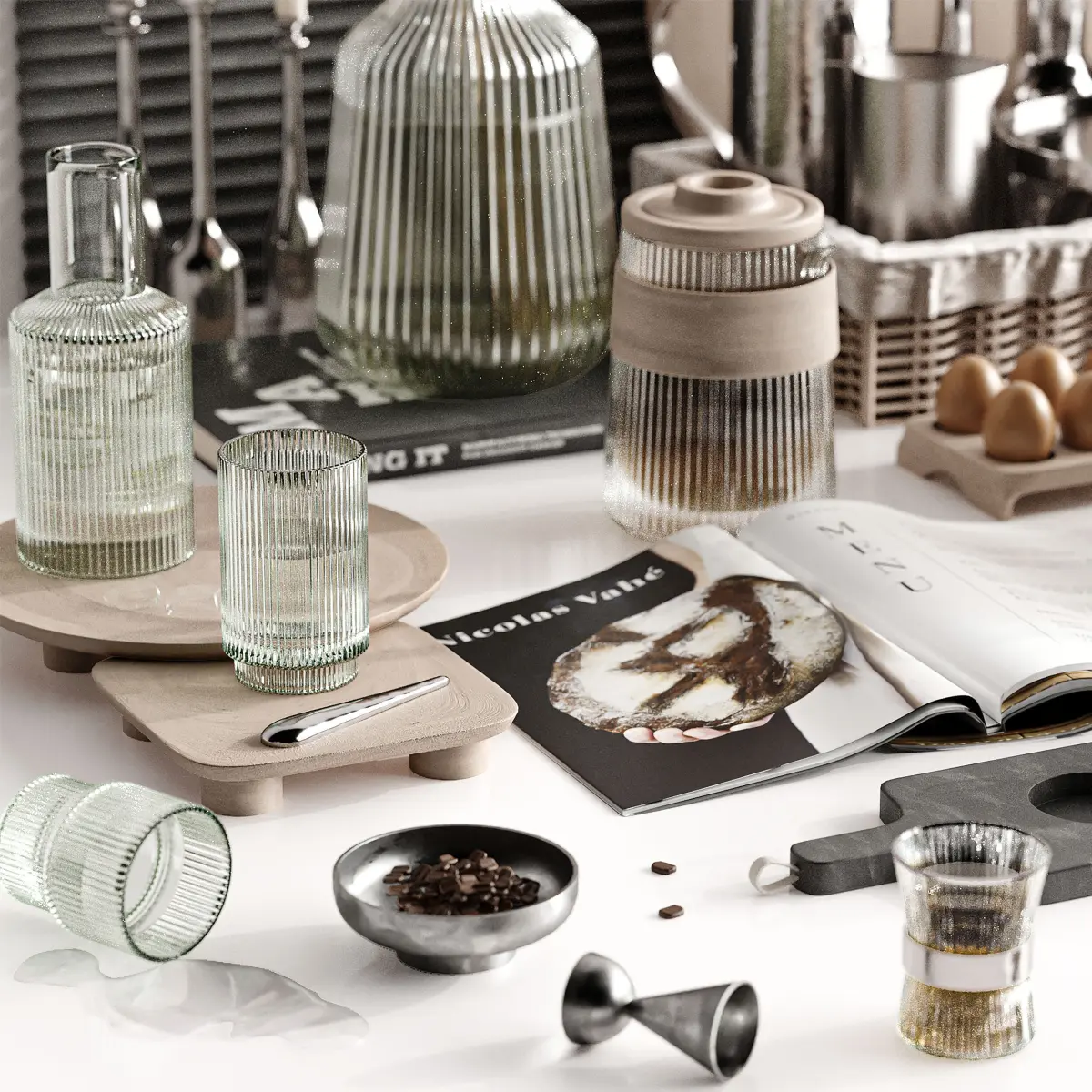 A kitchen set with high material quality and compatibality with all kitchen models and decoration3dsmax version: 2017Formats: 3dsmax + OBJPolys:510.643Units: CentimetersXform: yesRender: Corona + VrayRender view: Corona