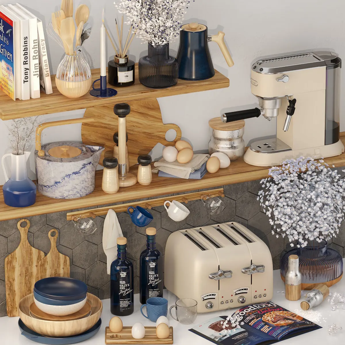 Name: Kitchen_Accessories_09Version: 2015Units: MillimetersDimension: 2277 x 1485 x 2027Polys: 2 597 182Verts: 2 874 280XForm: YesBox Trick: YesUnwrap: YesModel Parts: 35Render: V-Ray / (for Corona scene, leave a message so I can send it to you).Formats: 3Ds Max 2015 / OBJ / FBXNote: Some Objects have Turbo Smooth in the Renderings.