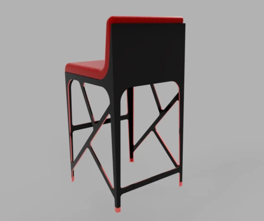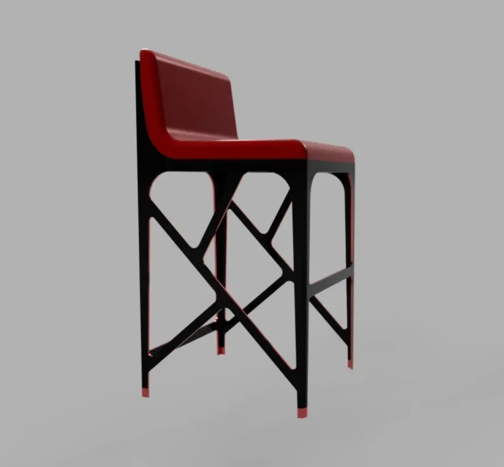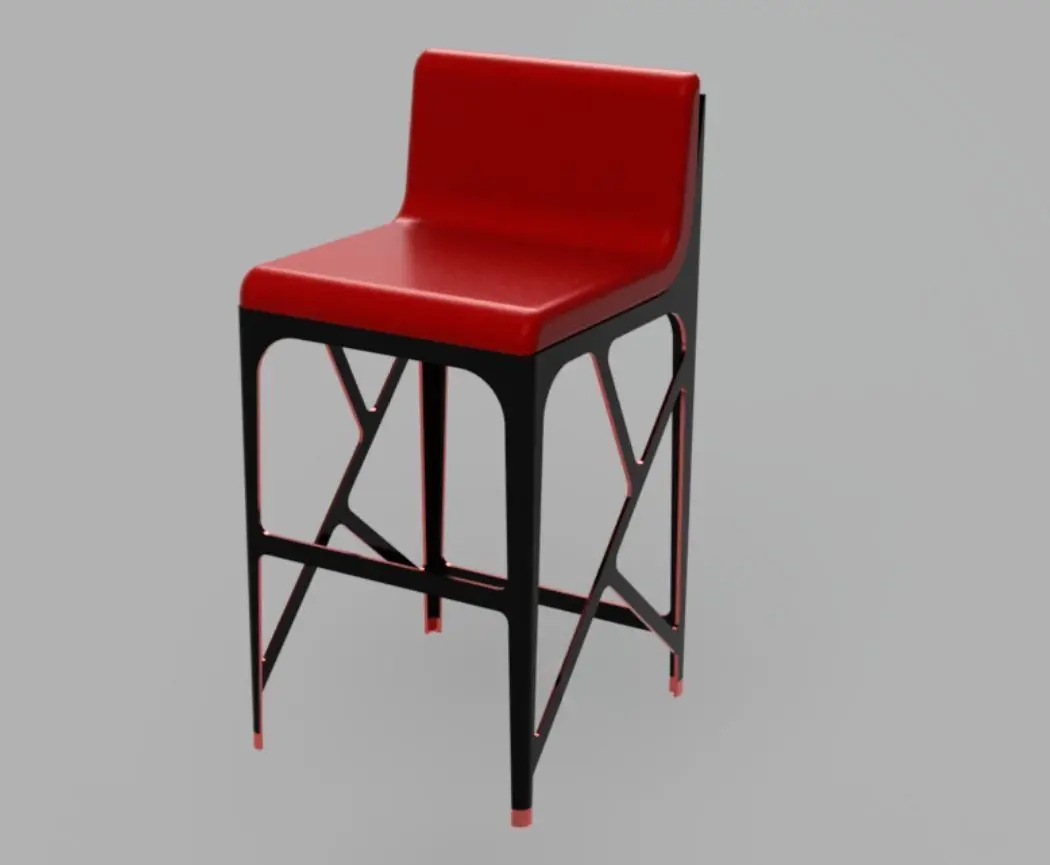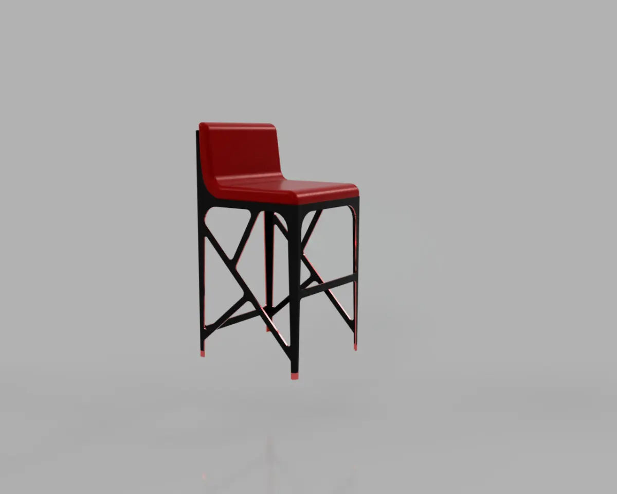 Modern Kitchen or Bar stool with a red leather seat and metal structure in red & black anodized aluminum.The metal structure is 6mm depth.Dimensions of the stool:width 450 mmdepth 475 mmheight 905mm